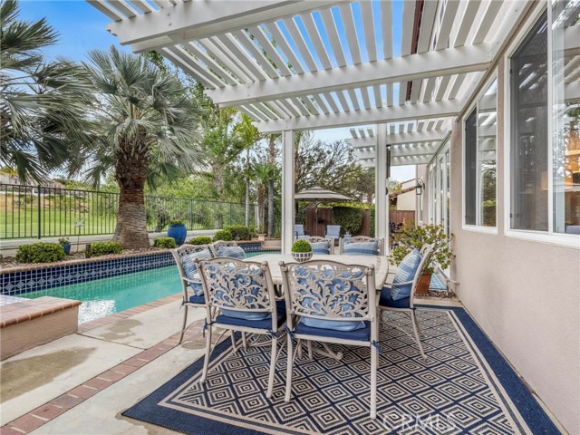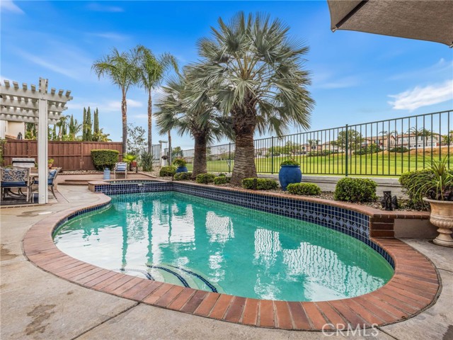 Welcome to this beautifully upgraded 3,200 sq ft Pool home located on the golf course of Temecula’s most desirable community, Redhawk. Backing directly to the golf course it offers stunning views from your private pool and spa. This 6-bedroom, 4 bathroom home offers an ideal layout with a convenient downstairs bedroom and bathroom with shower—perfect for guests or multigenerational living. Walking in the front door you will find a large dining room, leading to a formal living room/game room with double French doors opening up to your picturesque backyard. The upgraded kitchen is an entertainer's delight with granite countertops, stainless steel appliances, double oven, built-in wine fridge and large island. The kitchen opens up to the spacious family room where you will find upgraded LVP flooring which was placed throughout the first level, adding a warm and cozy feel throughout the home. Don't forget about the ground floor bedroom which is adjacent to a full bathroom offering a walk in shower with upgraded tile and rock. Upstairs, you’ll find five generously sized bedrooms, all with direct bathroom access. The expansive primary suite has been beautifully remodeled and includes a luxurious stonework bathroom with dual separate vanities, a soaking tub, and a large walk-in closet with built-in shelving and organizers, not to mention gorgeous views from every window. The front-facing bedroom offers its own private balcony and walk-in closet. All bedrooms are spacious and were thoughtfully placed with direct access to bathrooms. Step outside to your private backyard oasis featuring a sparkling pool and spa (heated by gas or solar), built-in BBQ, and serene golf course views. The low-maintenance landscaping includes drought-tolerant plants with drip and sprinkler systems. Additional highlights include a 3-car garage with direct access to the home, with one bay currently set up as a workshop. Located within the award-winning Temecula Valley Unified School District, serving Great Oak High School, Vail Ranch Middle School, and Helen Hunt Elementary. Enjoy low HOA, convenient freeway access, and proximity to shopping, parks, and local entertainment including Temecula wineries and Pechanga Resort & Casino.