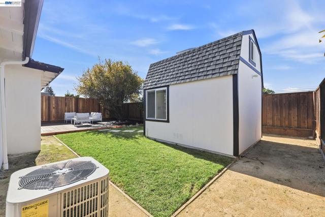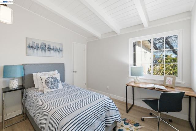 Pride of Ownership shows in this beautiful, mid-century modern home! An efficient floorplan, beamed ceilings, and light-filled rooms create a roomy and airy feeling throughout. The backyard feels exceptionally private due to the insulated and powered office shed, taller fencing, and mature, fruit-bearing pomegranate and Meyer lemon trees! There is just enough lawn for pets, without being overwhelming. The garage is spacious and offers additional options. Thoughtful, beautiful, and functional features include: a new insulated roof and gutters, new central heat and cooling via the energy-efficient heat pump (no wall heaters!), newer double pane windows, new doors, new SPC Vinyl flooring throughout, fresh interior and exterior paint, new quartz countertops, and tall cabinets in the kitchen. All appliances are new and included; gas stove present, but 220v outlet also present. Both bathrooms have been updated. The location has minimal traffic compared to other streets in the area due to the "L shaped" street. Located in the South Sundale neighborhood which has easy access to HWY 880 OR 680 via Automall/Durham, Stevenson, or Washington Blvd. BART, Whole Foods, and Costco, and Lake Elizabeth are only a few city blocks away. Make this GEM YOUR next HOME!