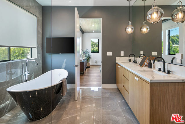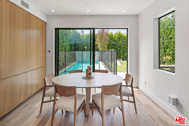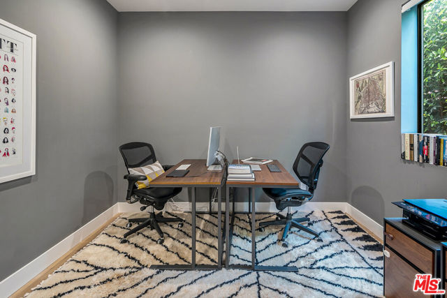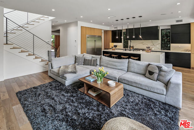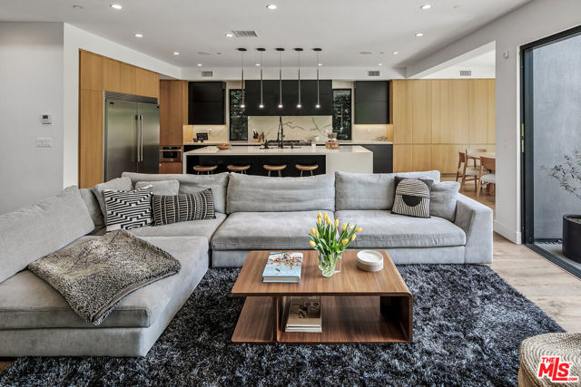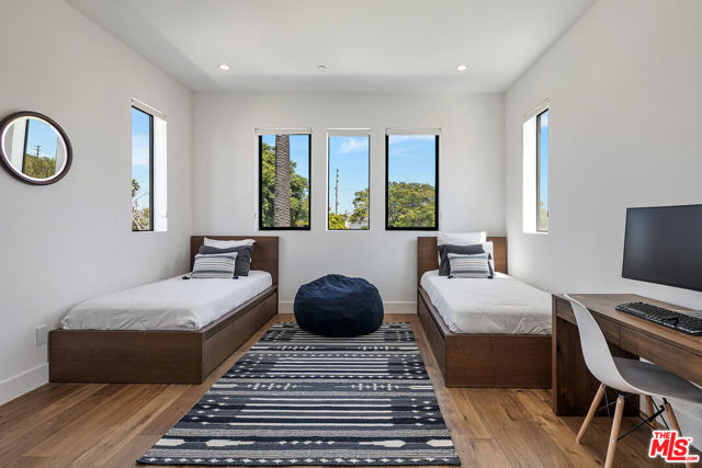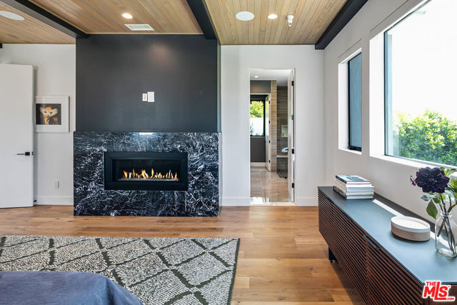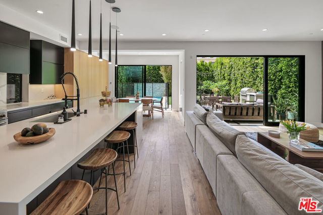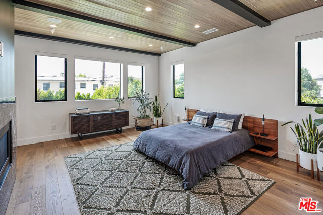 Enter through the automatic gate to this private architectural home and be transported into your tranquil coastal retreat. Built in 2019, this modern and bright 5 bedroom, 4 bath home features a formal dining area, a guest bedroom/office, a full bath, a spectacular gourmet kitchen with a walk-in pantry, an oversized island, and a breakfast bar. The great room has a fireplace and floor-to-ceiling glass stacking doors that open to a sun-drenched entertainer's backyard. The yard features a luxurious heated pool, spa, lush walls of tropical greenery, a mature fruit garden, and a spacious lawn. The built-in BBQ, outdoor Sonos speakers, and string lights maximize the home's indoor-outdoor living experience. Upstairs, you'll discover the primary bedroom with a cozy fireplace, a large, light-filled bathroom with a freestanding soak tub, a walk-in shower, dual sink vanity, and a walk-in closet. On the second floor, you will also find 3 spacious bedrooms, 2 full baths, and a 2nd-floor laundry room. 1037 Palms is located in a prime Venice location, steps away from the hottest destinations on Lincoln Boulevard, including Superba, Zinque, and Barry's Bootcamp. You will be a short stroll from iconic Abbott Kinney shopping and restaurants, a 1.5-mile bike ride to Venice Beach, and have easy access to LAX, the 10, 405, and 90 freeways. Grab your bike, surfboard, and toothbrush, and experience life in Venice!