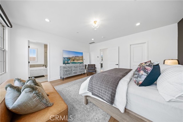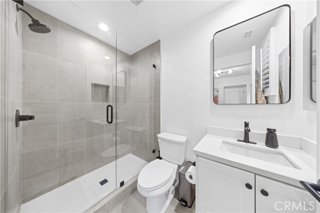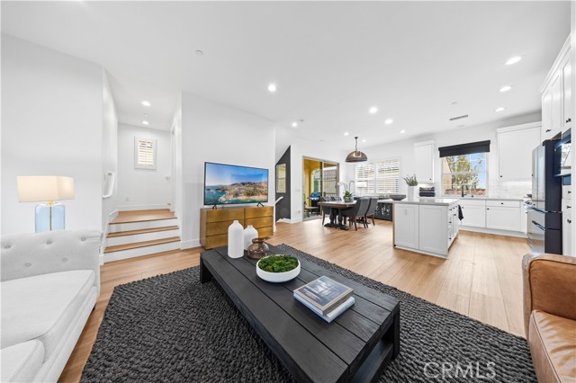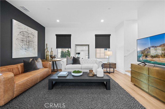 Experience elevated living in this beautifully upgraded home offering exceptional privacy with no common walls—providing the feel of a detached residence. Featuring 3 bedrooms and 3.5 baths, the home is filled with natural light and designed for modern living. The open-concept layout showcases designer finishes and high-end luxury vinyl plank flooring throughout. The remodeled kitchen features quartz countertops, stainless steel appliances, and custom cabinetry. Each bedroom includes its own en-suite bath for maximum comfort and convenience. The spacious primary suite offers a spa-inspired bathroom and ample closet space. Additional highlights include a guest powder room, central A/C, recessed lighting, and a private patio. A rare turnkey opportunity combining style, comfort, and a prime location near top-rated schools, shopping, dining, and easy freeway access.