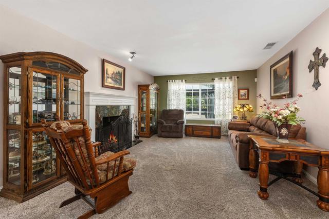 Beautiful Single-story 3-bedroom, 2-bath home offering 1,910 sq ft on a 7,400 sq ft lot in the highly desirable Oak Hill area of Escondido. Originally a 4-bedroom home; currently configured as a 3-bedroom. Public records reflect 4 bedrooms. Owned solar system with 24 panels. Tile roof. Dual-pane windows. Central A/C and heating. Whole-home water softener system. Updated electrical panel. Functional open layout with formal living room and separate family room featuring a fireplace and direct access to the backyard through sliding glass doors. Wood flooring throughout. Recessed lighting and ceiling fans. Spacious kitchen with custom wood cabinetry, granite countertops, center island with bar seating, built-in wine storage, and stainless steel appliances. Seamless flow into dining and living areas. Large primary suite with ample walk-in closet space and upgraded tile bathroom featuring a walk-in shower with glass enclosure. Secondary bathroom with updated finishes and full shower enclosure. Generously sized secondary bedrooms. Backyard designed for usability and low maintenance with extensive paver hardscape, multiple seating areas, raised garden beds, mature landscaping, and included spa. Previously had a pool, which has been covered. Front yard with established landscaping and shaded sitting area. Oversized driveway with additional parking plus attached two-car garage. Quiet street location near schools, parks, shopping, dining, and convenient freeway access. Move-in ready.