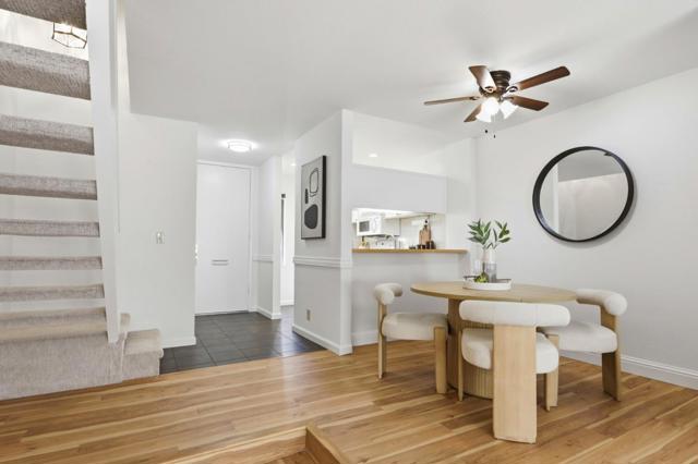 Discover this desirable end-unit, two-story townhouse in the heart of Silicon Valley offering the privacy of no neighbors above or below. The home includes two assigned carports plus ample guest parking for added convenience. Freshly updated with new paint, modern recessed lighting, and engineered hardwood flooring throughout the downstairs, the interior feels bright, stylish, and welcoming. The open-concept layout on the main level seamlessly connects the kitchen and spacious living room, with a large sliding glass door that opens to a private yard perfect for relaxing, entertaining, or gardening. Upstairs, you'll find two generously sized bedrooms, each with ample closet space, providing comfort and functionality. The community features resort-style amenities including pools, spa, saunas, clubhouse, evening security, and a children's play area. HOA covers water and garbage, and you'll benefit from Santa Claras highly affordable utilities. Ideally located within walking distance to Central Park and the Santa Clara Public Library, and just minutes from major tech employers like Nvidia, Apple, and more. Perfect for first-time buyers or investors, this move-in-ready home offers comfort, convenience, and an unbeatable location. Don't miss this opportunity!