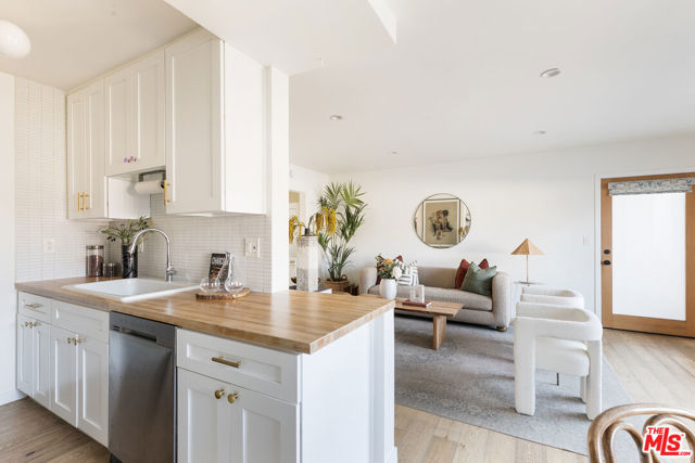 Tucked into a stylish mid-century modern building in the heart of Echo Park, this 1BD/1BA residence offers the kind of city living that's equal parts design and ease, where your mornings start with peek-a-boo city views and your afternoons end lounging poolside. White oak floors and a beautifully appointed kitchen set a warm, inviting tone, featuring butcher block counters, open shelving, brass hardware, and crisp white micro tile backsplashes. No detail was overlooked. The generously sized bedroom offers ample closet space with double closets and floor-to-ceiling built-in shelving, while the bath features a deep soaking tub and patterned tile floors. Outside, a gated entry welcomes you home and the magical pool area delivers serious Palm Springs vibes, bordered by white brick, redwood lounge decks, and lush landscaping. Practical conveniences round out the package: mini-split AC, in-unit laundry, and off-street parking with dedicated storage. Located just a few blocks from Sunset Boulevard, you'll have Echo Park favorites like Levant Bakery, Canyon Coffee, Bacetti, and Bar Flores practically at your doorstep. A rare combination of location, design, and comfort, this is Echo Park living at its best.