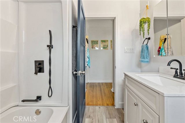Excellent family home on a tree lined street in Lake Balboa with a fabulous backyard designed for relaxing and entertaining. The long driveway and a two-car garage lead to this charming 3 Bed + 1 3/4 Bath home with hardwood flooring,an updated kitchen and a spacious, grassy backyard.  The bright galley style kitchen features granite countertops with breakfast bar, and stone flooring that complements the abundant white cabinetry.  Both bathrooms have been upgraded, one is ensuite! The beautiful primary bedroom is highlighted by double-hung windows and views of the manicured backyard. The living and dining rooms overlook the colorful grounds, which include a raised planter bed, Meyer lemon and lime trees. An elevated covered patio makes indoor-outdoor entertaining easy all year long. When the party is over, relax in the above ground Iris Garden spa! A separate laundry room with storage adds everyday convenience.  Central HVAC, the insulated attic and dual-paned windows keep you comfortable in summer and winter! The two-garage is outfitted as a workout studio with one section used as an office or storage room. The long driveway allows room for an RV or to easily park two cars. This convenient central location affords easy access to Lake Balboa recreation, Ralphs’s Supermarket, Humble Bee Bakery and Café, Starbucks, LA Fitness, CSUN and the 405 freeway. Strike now, while interest rates are favorable!