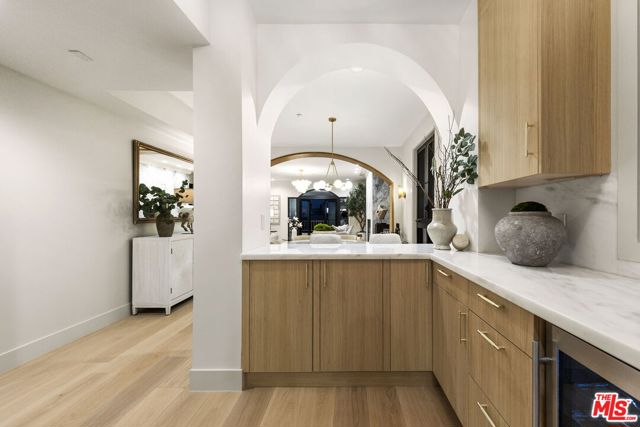 This prime Brentwood residence is the ultimate in luxury condominium living. Halston House is a bespoke collection of eight condominium residences right in the heart of Brentwood. All of the residences comprise three bedrooms, a family room and 2.5 bathrooms. Elegantly appointed living spaces include gracious living rooms with wide-plank oak wood flooring, fireplaces, large windows and French doors that allow natural light to pour in. The family rooms offer built-in cabinetry, creating an ideal setting for a media room or office. Gourmet kitchens feature Italian Dolomite countertops with full-height backsplash, custom oak cabinetry, stainless steel appliances, glass-front refrigerators and wine refrigerators. The serene primary bedrooms are complemented by spa-like bathrooms with hand laid herringbone limestone, dual sinks, a separate soaking tub, a walk-in shower, and expansive custom-designed walk-in closets. Additional features include built-in speakers, dedicated power for EV chargers, private package delivery lockers in the lobby and additional large private storage in a locked storage room. Halston House was thoughtfully designed with elegance and privacy as a guiding principle.