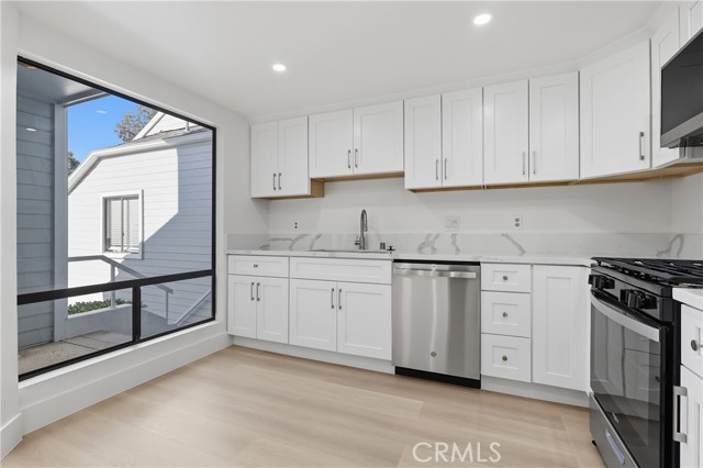 This beautifully remodeled tri-level townhome is located in the highly sought-after “Baywatch” community. The home offers a blend of modern upgrades and stylish features, ensuring a luxurious and comfortable living experience. The spacious interior is highlighted by soaring vaulted ceilings and expansive windows that fill the space with natural light. The main level includes a wet bar, fresh paint, new carpet, and a convenient powder room. Newly installed engineered hardwood floors add a touch of elegance throughout the main living areas. Enjoy California living with two outdoor balconies and a private patio area—perfect for relaxing or entertaining guests. The updated kitchen features quartz countertops, custom cabinetry, and stainless steel appliances, providing a modern and functional space for cooking and gathering. Upstairs, the expansive master suite offers a luxurious retreat with a dual quartz vanity and ample closet space. A large guest bedroom is also on this level, complete with its own dedicated bathroom for added privacy and convenience. The townhome includes a two-car attached garage located below the main living area, adjacent to a dedicated laundry space for ease and functionality. Residents of the “Baywatch” complex enjoy access to a lovely pool and spa area, as well as beautifully maintained grounds. The community has recently benefited from an extensive $2 million upgrade, enhancing its appeal and value. This exceptional and move-in ready space is sure to go quickly. Don’t procrastinate—schedule your viewing today!