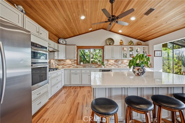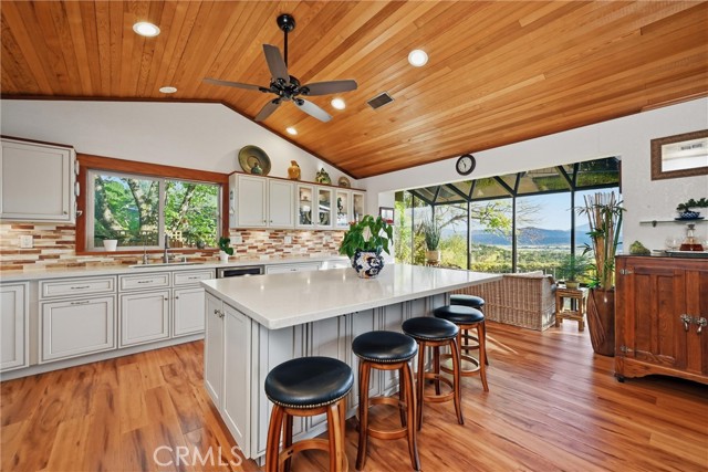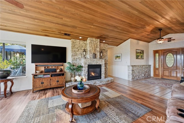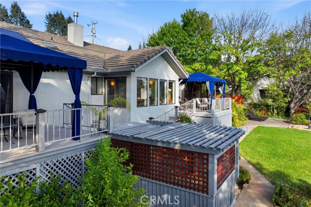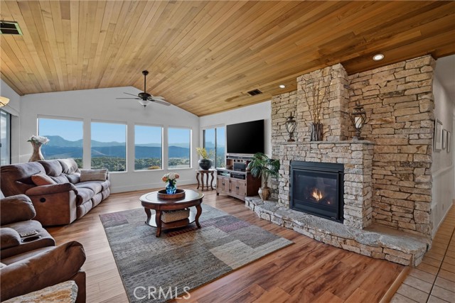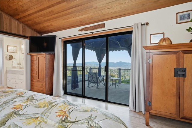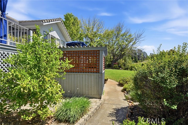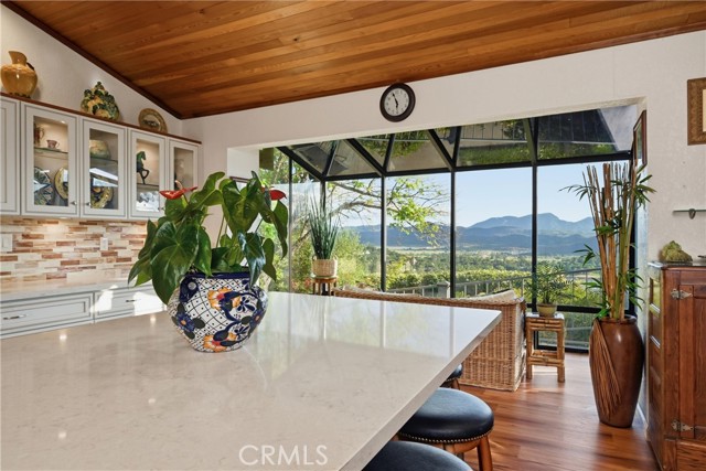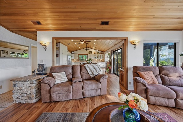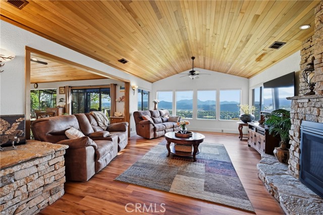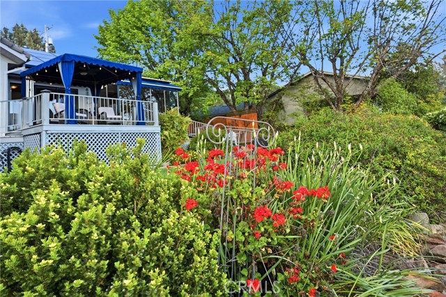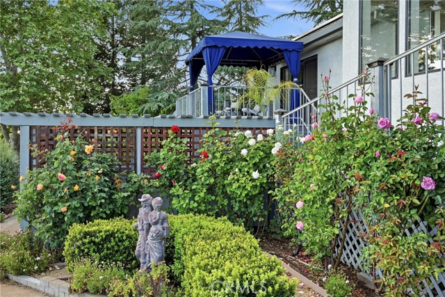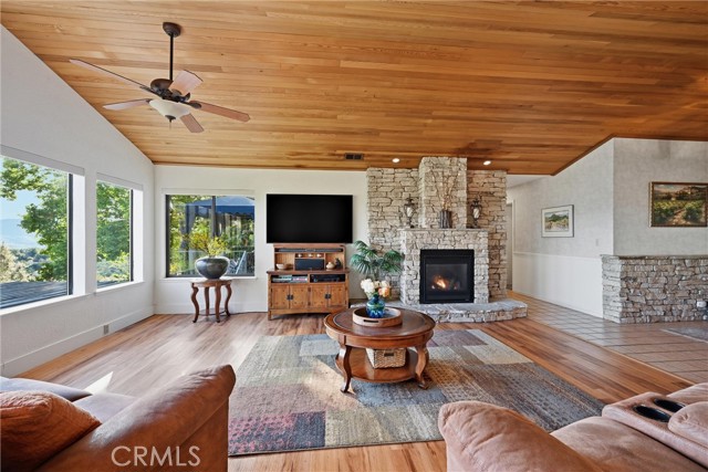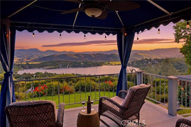Experience quintessential California living with sweeping, million-dollar views. Set on over 1.2 acres, this beautifully remodeled residence offers a rare blend of privacy, comfort, and understated luxury. Step through the gated entry into a serene front courtyard, where mature landscaping and meandering pathways create a warm and inviting arrival. Inside, a sense of understated luxury meets comfortable, livable design. Expansive picture windows stretch along the rear of the home, framing breathtaking views of the lake, valley, and surrounding mountains—an ever-changing backdrop that defines daily living here. Vaulted ceilings with inlaid clear, hard redwood tongue-and-groove detailing add warmth and architectural character, while a stacked stone gas fireplace anchors the living space. The dream kitchen pairs function with craftsmanship, featuring custom tile work that echoes the rich wood tones above, luxurious, upgraded cabinetry with abundant storage, and premium stainless steel appliances including a double oven, 5-burner cooktop with hood, and reverse osmosis drinking water at the sink. Just beyond, a light-filled sunroom invites year-round enjoyment—an ideal place for morning coffee or quiet evenings, all while taking in the view. The home offers comfortable living spaces with three ample-sized bedrooms, including a well-appointed primary suite designed as a private retreat. Vaulted ceilings, a large triple-wide slider to capture the views, and direct access to a private deck create a seamless indoor-outdoor connection. The remodeled primary bath features large-format tile, dual sinks, upgraded fixtures, a private water closet, and a walk-in closet. Outdoors, the grounds unfold like a private garden retreat. Winding paths lead to multiple seating and patio areas, a covered BBQ space, lush lawn area, and thoughtfully curated plantings including rose and herb gardens, fruit trees, and raised beds. A tranquil redwood grove adds a sense of place and permanence, offering both shade and natural beauty. Plenty of level parking spaces including parking for a boat or RV. Extensive upgrades enhance both efficiency and ease of living, including owned solar, a lifetime tile roof, newer HVAC system, whole house fan, motorized retractable awnings, deer-proof fencing and composite decking. This is more than a home—it’s an invitation to slow down, take in the views, and enjoy a lifestyle defined by beauty, comfort, and connection to the land.