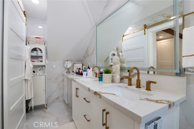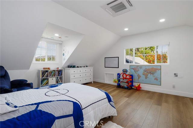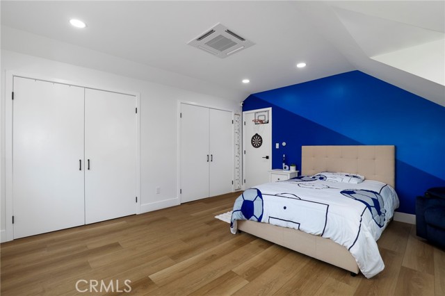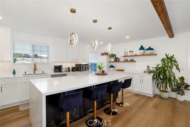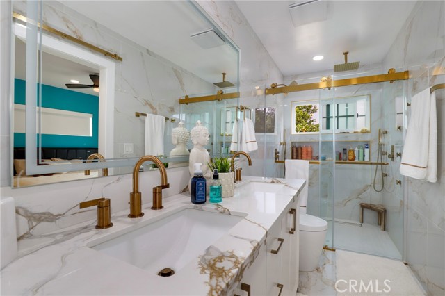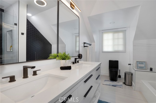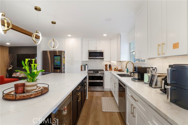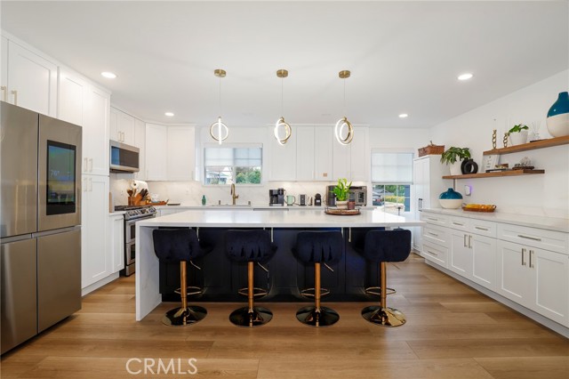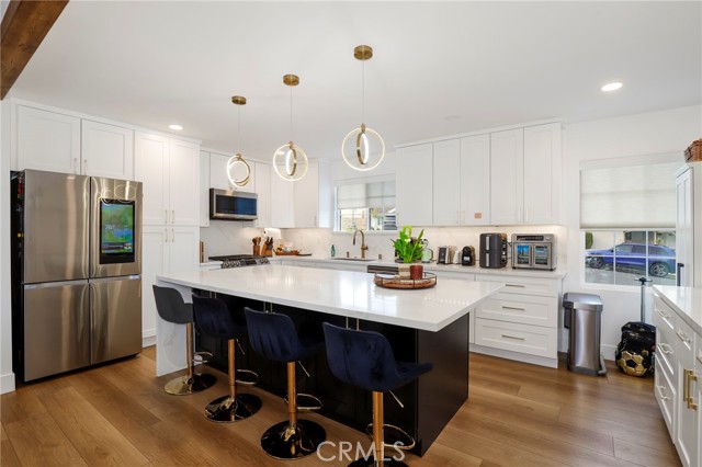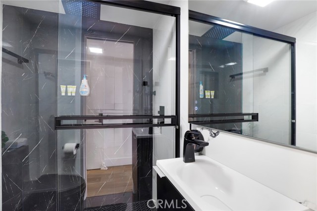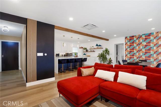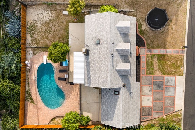 Fully remodeled 4-bedroom, 3-bath home in desirable Granada Hills, completed in early 2024 with over $400K in documented improvements. Renovation taken down to the studs with major system upgrades including new electrical, plumbing, HVAC system with individual room thermostats, and tankless water heater. All new doors, windows, and high-end finishes throughout. Open-concept living area features a dramatic oversized sliding glass door leading to a private backyard with pool, creating seamless indoor-outdoor living. Chef's kitchen includes top-of-the-line appliances and modern design elements. Spacious primary suite (expanded from original layout) offers custom closets and a luxurious en-suite bath with dual vanities, oversized double shower, and premium smart toilet with bidet features. Additional upgrades include built-in ceiling sound system, powered window shades with remote and mobile controls, and EV charging capability. Garage has been converted to additional living space and is attached to the main residence, offering flexible use with a separate entrance and interior access. Space can function as part of the main home or be closed off for added privacy and used as an ADU. Buyer to verify all permits, square footage, and intended use. Public records reflect approximately 1,765 sq ft, but the property measures approximately 2,700+/- sq ft. Turnkey property with extensive upgrades, offering flexibility and modern living.