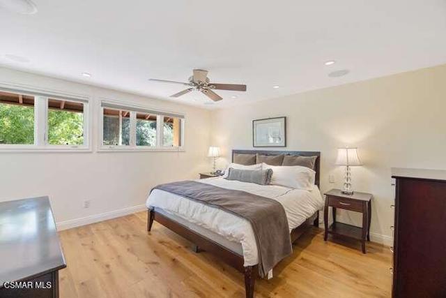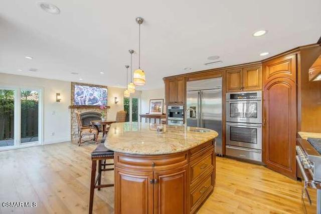 Beautifully updated and move-in ready, this 4-bedroom, 3-bathroom home offers an exceptional blend of warmth, functionality, and true California indoor-outdoor living. Featuring a highly desirable main-floor bedroom and full bath, the layout is both versatile and inviting.Inside, rich French oak flooring and fresh interior paint create a light, cohesive feel throughout. The home features soaring ceilings, abundant natural light, and seamless flow between living spaces. The inviting family room opens directly to the backyard, creating an ideal setting for both everyday living and entertaining.The kitchen is the heart of the home, showcasing custom cabinetry, stainless steel appliances, and an expansive center island that connects effortlessly to the main living areas.Upstairs, the spacious primary suite offers a spa-like retreat with a beautifully updated bathroom, soaking tub, oversized walk-in steam shower, and custom-designed closet.Step outside to a truly exceptional backyard designed for entertaining and relaxation. Enjoy a sparkling pool and spa, built-in BBQ, outdoor fireplace, and multiple seating and dining areas surrounded by lush, mature landscaping. A private courtyard entry with tranquil fountain adds charm and an additional outdoor living space.This home offers a rare combination of thoughtful upgrades, inviting interiors, and resort-style outdoor living.
