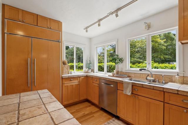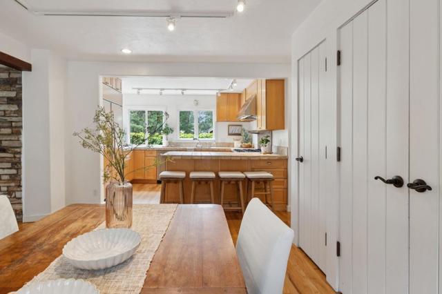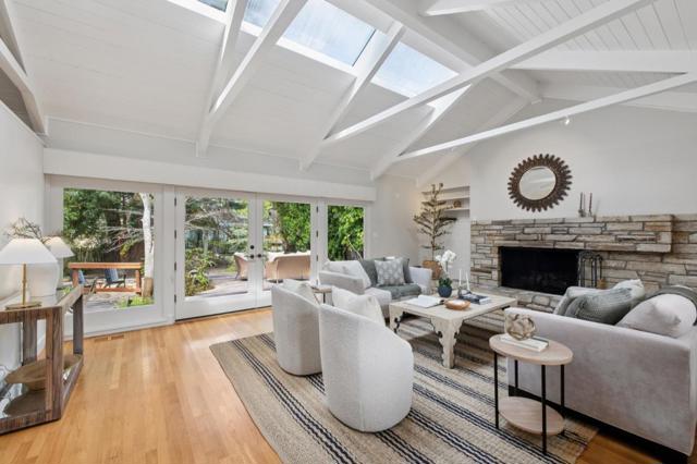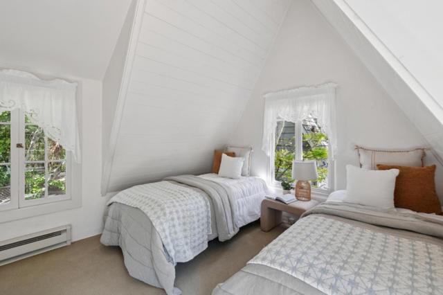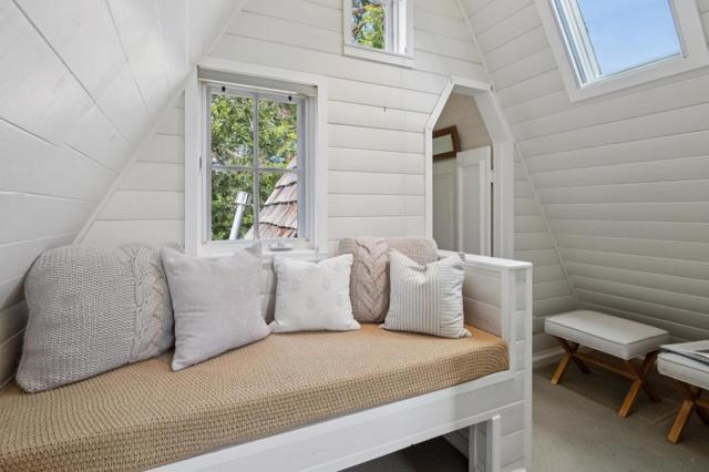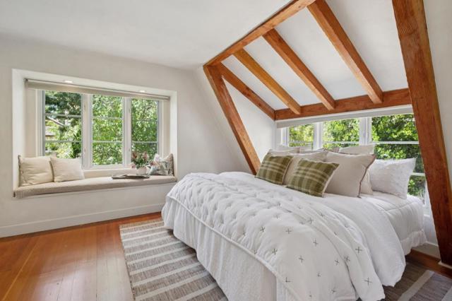 Once upon a time, along a quiet lane just a short stroll from the village's lively shops and welcoming eateries, stands a storybook cottage drawn from the pages of a faerie tale. Built in 1946, this enchanting home rises with steeply pitched roofs and original redwood siding. Its timeless character unfolds across more than 2,400 SF, resting upon nearly a double parcel where mature trees whisper and sunlight dances across the ground. Within are 4 bedrooms and 3.5 baths, each space filled with quiet magic. Inside, open-beamed ceilings stretch above like the rafters of an old woodland hall, while cozy nooks invite moments of rest, reflection, and imagination. At the heart lies a thoughtfully updated kitchen fit for a master of feasts featuring Wolf, Sub-Zero, and Bosch appliances, along with a Miele washer & dryer, blending modern ease with old-world charm. Every corner tells a story: laughter by the hearth, soft mornings in golden light, and evenings where the world feels far away, though the town is only steps beyond your door. Outside, the grounds offer space to wander, gather, and dream beneath the trees. The generous lot provides rare privacy in a coveted setting. This is no ordinary home, but a place where past and present meet, and where a new chapter quietly awaits.