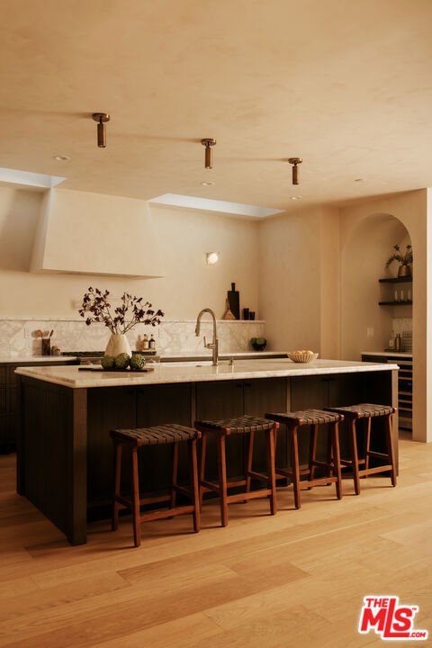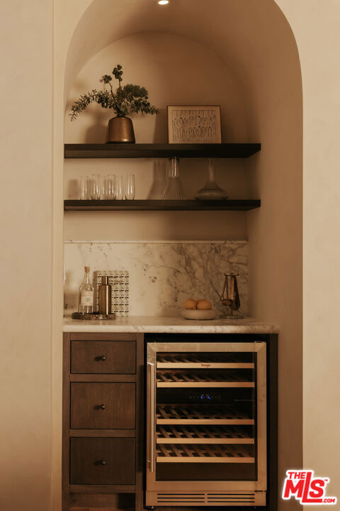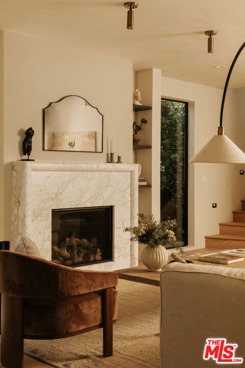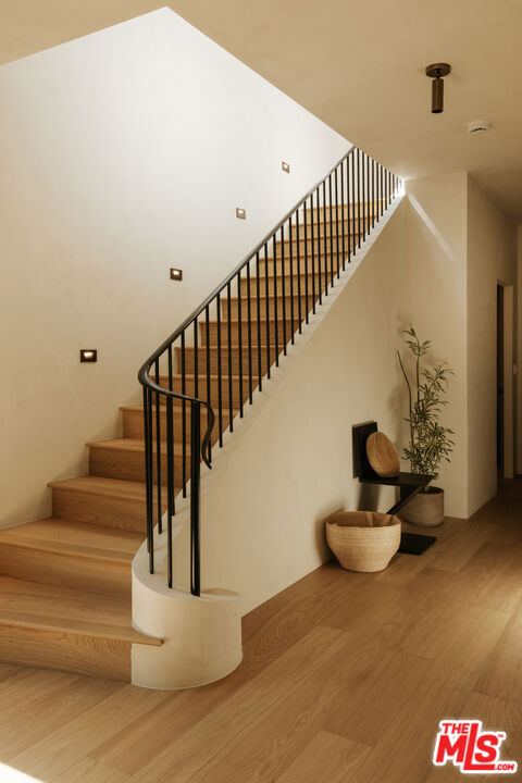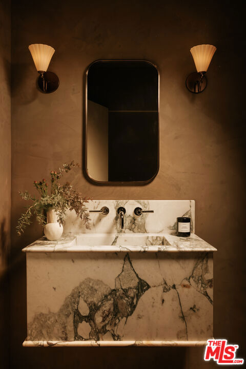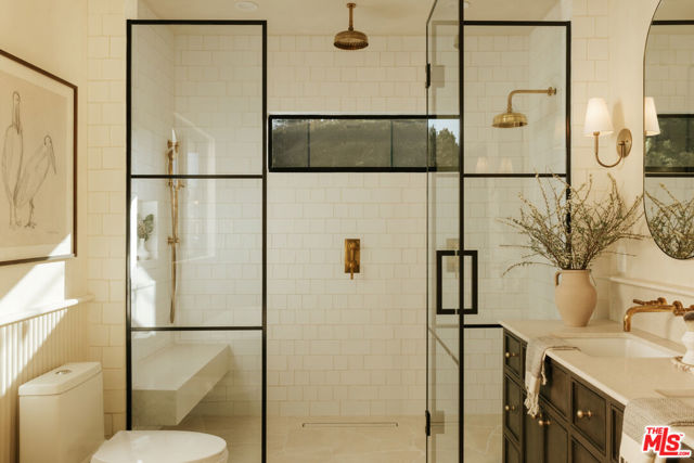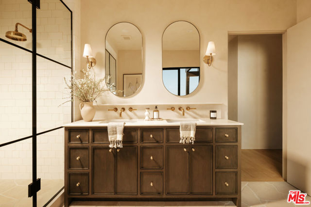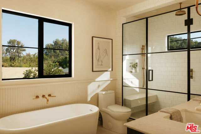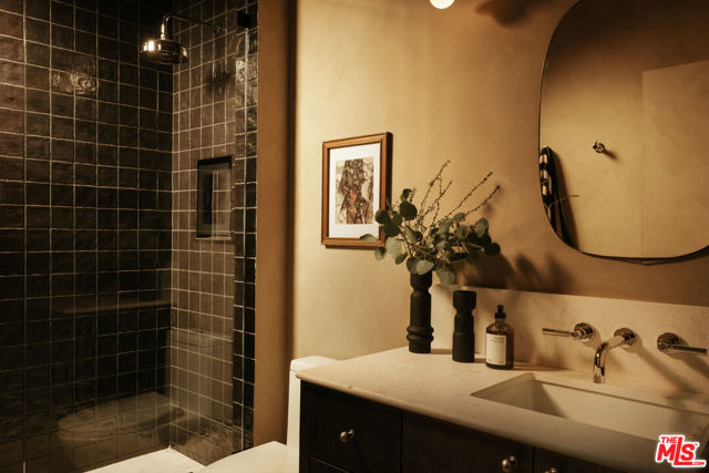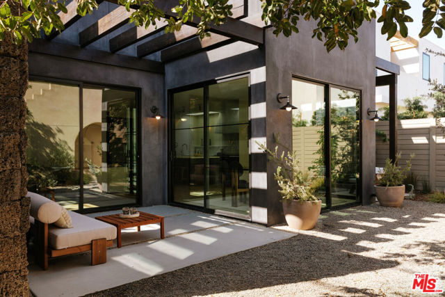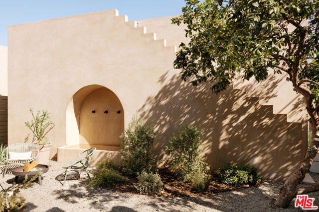 Newly rebuilt and reimagined by renowned local design/build company Nubis Development, this striking Frogtown compound includes a 3 bed, 2.5 bath main residence spanning 2,205 sq ft and a rear 1 bed, 1 bath ADU totaling 565 sq ft. Thoughtfully built with exquisite, romantic design, the property delivers a seamless blend of functionality, indoor-outdoor living, and serene sophistication in one of Los Angeles' most vibrant neighborhoods. Positioned on a prominent corner lot, the home makes a striking first impression with its bold, modern facade - wrapped in stone cladding and a moody charcoal exterior. Tall privacy hedging and curated plantings frame a gated entry path leading to the front door, offering a subtle, private approach to the light-filled home. The entry opens into a dramatic living space centered around a fireplace, while expansive Milgard sliding doors create an effortless connection to the surrounding patios and yard. An intriguing powder room features Roman clay walls and a custom marble sink. The kitchen serves as the focal point, anchored by a generous center island with honed Carrara marble countertops and bar seating. Custom cabinetry provides abundant storage, while skylights above the six-burner range bathe the space in natural light. A chef's dream, additional amenities include a paneled dishwasher, a full suite of THOR appliances, and a tucked-away pantry with a built-in microwave. An arched bar area with a wine refrigerator adds an elevated touch. At the far corner, the dining room is wrapped in floor-to-ceiling Milgard sliding doors on three sides, creating a bright and tranquil setting for dining. A sculptural staircase leads to the second level, where all three bedrooms are thoughtfully arranged along a striking curved hallway. At the end of the hall, the primary suite serves as a true retreat, featuring decorative molding along the bedside wall with sconces flanking the bed, a spacious walk-in closet, and a private balcony with integrated planters. The ensuite bathroom evokes a spa-like experience, complete with a freestanding soaking tub, Sacal flagstone floor tiles, an oversized shower with grid-style glass and dual rain shower heads, and a vanity with dual sinks and Crema Lisboa limestone countertops. Two additional bedrooms share a beautifully appointed hall bathroom with natural stone flooring, while a dedicated laundry room adds everyday ease. Crowning the main residence, a rooftop deck offers a showstopping space for entertaining, complete with a built-in BBQ, sink, refrigerator, bar-top seating, planter boxes, and ambient lighting - all accessed by a spiral staircase and designed to capture sweeping views. At the rear of the property, the newly constructed ADU mirrors the main home's thoughtful design and material palette. The open-concept living space features limewash walls and a full kitchen skylit with custom cabinetry and stainless steel LG appliances. A serene bedroom, well-appointed bathroom, and in-unit laundry make it a fully self-sufficient space, while its own rooftop deck provides an additional private outdoor escape, highlighted by a sculptural, geometric staircase that adds a remarkable architectural moment to the exterior. The outdoor spaces are thoughtfully designed, offering a series of distinct yet connected areas for lounging, dining, and entertaining. The backyard is finished with a custom fountain, fire pit, textured stonework, and patios off the living room and dining room, all brought together by lush, curated plantings from Natalie Chandler Design that enhance both privacy and visual depth. This exceptional property is surrounded by beloved local favorites, including the LA River bike path, Wax Paper, Lingua Franca, Loreto, Salazar, and Spoke Bicycle Caf. With its design-forward aesthetic and versatile layout, this compound offers a rare opportunity to experience elevated living in one of LA's most creative communities.