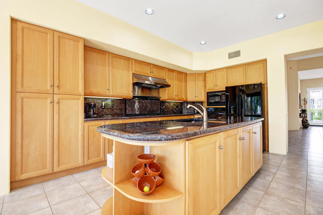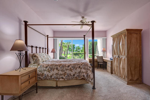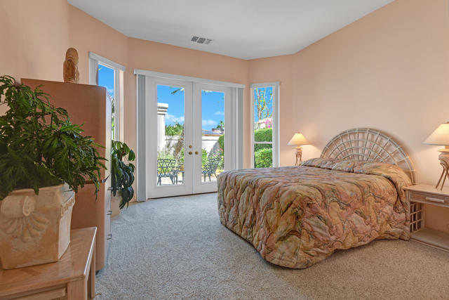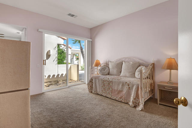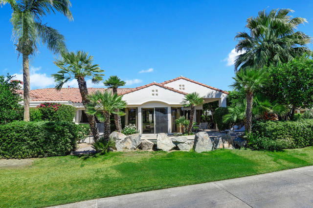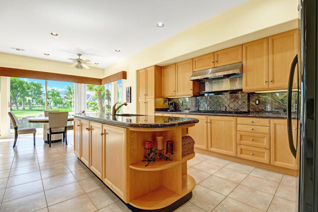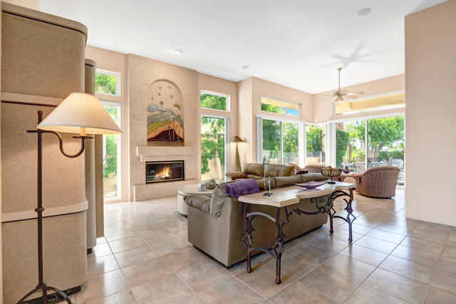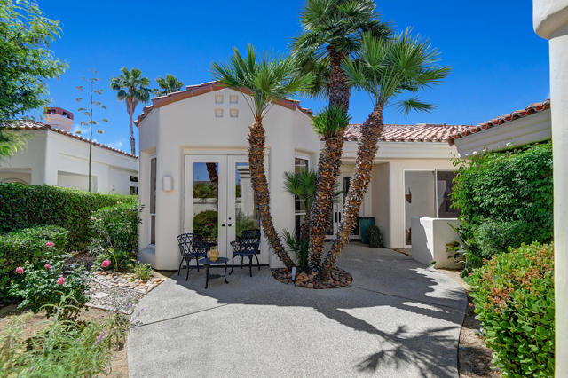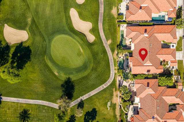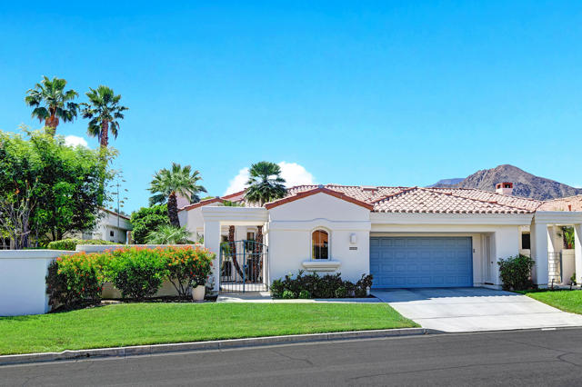 Welcome to 79715 Mandarina, a beautifully appointed single-family attached home in the sought-after Citrus community. This south-facing Cayman 2 floor plan is ideally positioned on the 9th green, offering expansive views that stretch across the 9th hole, the driving range, and all the way to the 1st hole--creating a rare, open backdrop without neighboring homes in sight.Just a short walk to the clubhouse, this home combines convenience with one of the most desirable orientations in the community. A private courtyard entry welcomes you in and leads to a detached casita--perfect for guests or a private office.Inside, the home features ceramic tile throughout the main living areas with carpet in the bedrooms. The open-concept layout offers a spacious living room with a wet bar, ideal for entertaining. The kitchen is well-equipped with granite countertops, a gas cooktop and range, black appliances, and a bright breakfast nook that captures the coveted southern sun.Recent updates include newer AC units and a hot water heater, providing added comfort and peace of mind.The primary suite is generously sized and perfectly positioned to take in the stunning southern views. It includes a large bathroom and walk-in closet, creating a comfortable and private retreat.Step outside to a low-maintenance backyard featuring a beautiful pool and spa, where you can relax and enjoy breathtaking golf course and mountain views year-round.Offered turnkey furnished, this is a fantastic opportunity to own a move-in-ready home in one of La Quinta's premier golf communities.