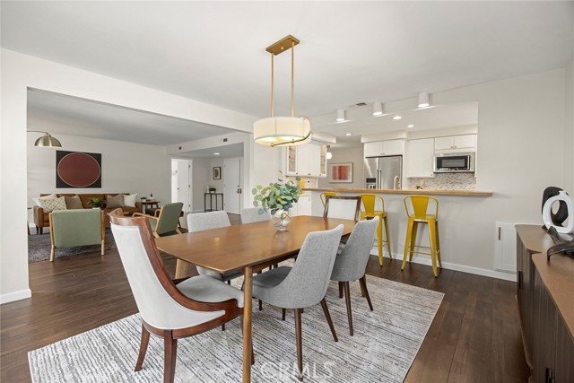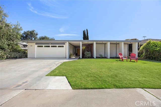 Stylish, striking and exuding an understated cool vibe, this stunning mid-century modern residence is sure to impress, welcome to 620 E. Glenwood Avenue. Tucked into a quiet, tree lined cul-de-sac; crisp, sharp architectural details are complimented by a lush, tropical landscaped entryway. Double doors lead into a spacious, meticulous and FRESHLY PAINTED interior with wood flooring throughout the living areas and main hallway. The striking fireplace is balanced by two large windows overlooking the manicured backyard, the spacious living room flows perfectly into the formal dining room with stylish chandelier and a sliding door to the backyard and patio. A remodeled and perfectly appointed kitchen features quartz counters with a contrasting wood breakfast bar, a full suite of KitchenAid SS appliances including a 5-burner gas cooktop, side-by-side fridge and quality shaker white cabinetry. A breakfast nook, ½ guest bathroom and direct garage access complete this side of the home. Down the light filled hallway with skylight, double doors lead into a surprisingly spacious primary suite with dual closets, one a walk in, and a sliding door to the backyard. The en-suite has been remodeled with a perfect mid-century modern style featuring custom tile flooring and shower enclosure and a beautiful dual sink vanity. Three secondary bedrooms with new carpet and an updated full bathroom are found as you continue down the hallway. The private and stylish backyard enjoys a wood slat patio and great horizontal fencing detail. Owned, fully paid off 3.6 Kw SOLAR system too. 7 year old membrane GTA roof too! Water heater is 1 year old. Don’t miss this spacious and stylish home – it likely won’t remain on the market long.
