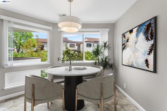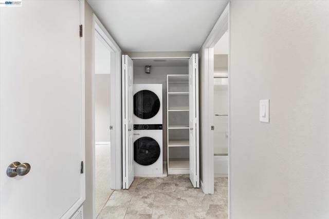 Welcome to this highly desirable no steps to entry unit offering comfort, convenience, and modern updates throughout. The kitchen features sleek granite countertops, a new refrigerator, and updated faucet, while the home also boasts all brand new Milgard Dual pane windows, a new water heater, fresh interior paint, and brand-new carpet. Both bathrooms have been thoughtfully refreshed with newly refinished tile, new shower doors, updated faucets and fixtures, freshly painted cabinetry, new medicine cabinets, and modern lighting. Additional upgrades include new blinds and the convenience of in-unit laundry with a brand-new stacked washer and dryer. Enjoy resort-style living in this gated community, complete with multiple swimming pools, a clubhouse with recreation space, game room, and exercise equipment. The unit also includes a covered parking space (#2). Ideally located just blocks from BART and major freeways, and minutes from downtown Castro Valley’s shopping, dining, and entertainment—this home offers the perfect blend of accessibility and lifestyle.