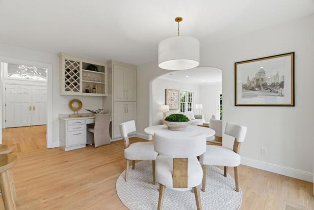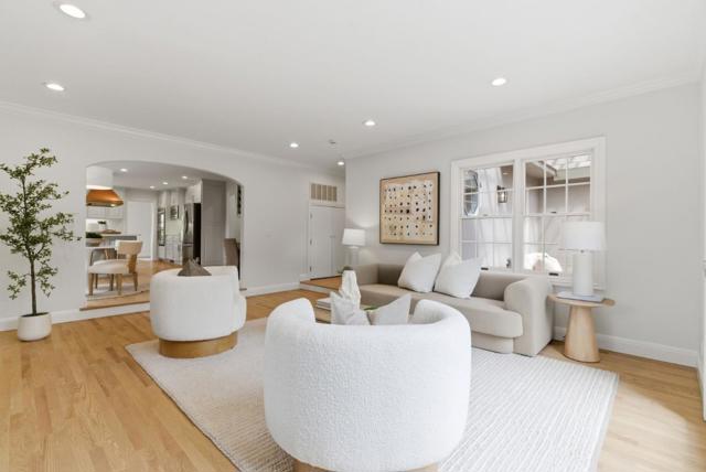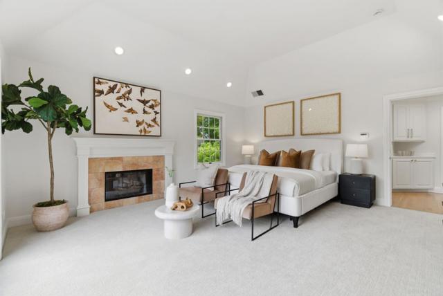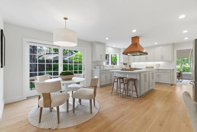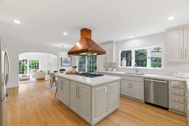 Tucked away just moments from the Village of Los Altos & highly regarded schools, this move-in ready home offers an inviting retreat with contemporary elegance & elevated comfort. The grand entry welcomes you with rich hardwood floors, graceful curved staircase, statement chandelier & skylights creating an airy sunlit ambiance. The open-concept kitchen features a custom copper hood above a spacious quartz island, abundant cabinetry, large cooktop, wall ovens and generous sink overlooking the lush, emerald-green backyard framed by mature trees, all opening to a bright & spacious family room. The main floor offers flexibility with a bedroom & full bath ideal for guests or home office. Formal living & dining areas with soaring ceilings and dramatic fireplace add scale & comfort, while interconnected patios extend the living experience outdoors. Upstairs, the primary suite is a private retreat with high ceilings, cozy gas fireplace & private balcony. The suite includes a walk-in closet, remodeled bath with designer finishes & soaking tub. Two additional bedrooms & full bath with double vanity complete the upper level. Thoughtful updates & effortless living in highly sought-after North Los Altos offer an exceptional opportunity in one of the areas most desirable neighborhoods.