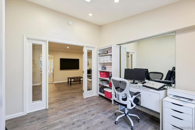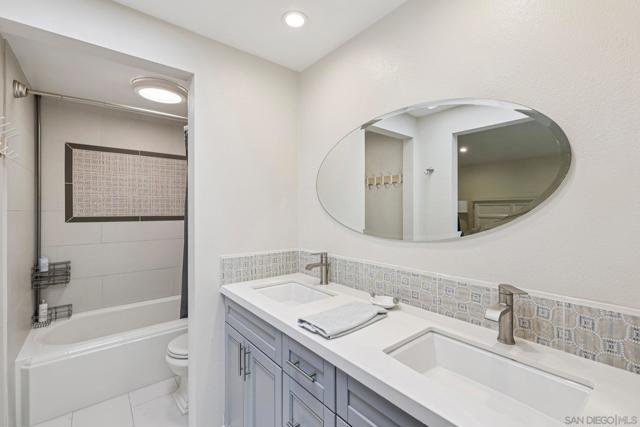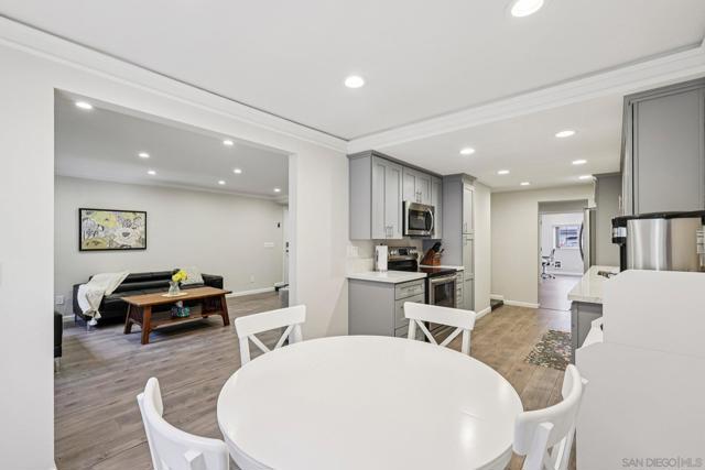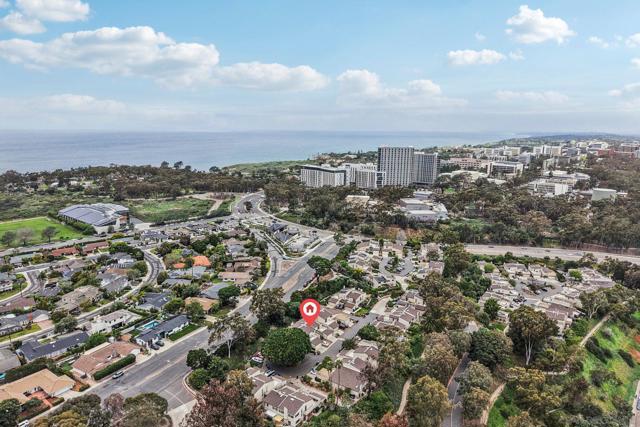 PRIME LA JOLLA SHORES HEIGHTS LOCATION * WEST OF THE 5 FREEWAY * LARGE TOWNHOME ONLY SHARING ONE WALL * BEAUTIFULLY UPGRADED BONUS ROOM DOWNSTAIRS * LARGE BACKYARD * 2 CAR ATTACHED GARAGE WITH EXTRA OUTDOOR PARKING SPACE! Beautifully upgraded and truly impressive, this home makes a stunning first impression the moment you walk through the door, showcasing quality finishes, thoughtful updates, and a layout perfectly designed for comfortable living and entertaining. The fully remodeled kitchen is a standout, featuring gray shaker cabinetry, abundant counter space, sleek quartz countertops, stainless steel appliances, and elegant hardware paired with a striking gold-bronze faucet that adds the perfect designer touch. Throughout the home you’ll find upgraded flooring, crown molding, recessed lighting, 3 skylights that bring in natural light, and a large fireplace anchoring the living room, while a separate family room provides additional space to relax or gather. A versatile optional room or den on the first floor offers flexibility for guests, a home office, or multi-generational living.Upstairs, three spacious bedrooms feature vaulted ceilings that enhance the open, airy feel. The primary suite is truly special, complete with its own private balcony and a beautifully upgraded bathroom boasting a double vanity, soaking tub, matching tile accents, and a walk-in closet. The hall bathroom is equally refined with a designer vanity and walk-in shower, and the convenient upstairs laundry closet makes daily living easy. Step outside to a large backyard that backs to a greenbelt, offering privacy and the perfect setting for entertaining, relaxing, or simply enjoying the outdoors. The two-car garage provides direct access into the home, plus an additional parking space for added convenience. Water is included in the HOA, and the brand-new roof adds even more value and peace of mind. With only one shared wall, this home has the privacy and comfort you want. All appliances convey (including washer and dryer) and 3 mounted TV's.Located in the beautifully tree-lined community of La Jolla Shores Heights, residents enjoy access to a pool, tennis court, and playground, and is just minutes from UCSD (within walking distance), UTC Mall, La Jolla Playhouse, Birch Aquarium, La Jolla Village shopping and dining, Whole Foods, Trader Joe’s, AMC, the trolley station, YMCA, parks, and the world-famous beaches of La Jolla Shores and San Diego's famous beaches. This is the total package — style, comfort, location, and lifestyle all in one!