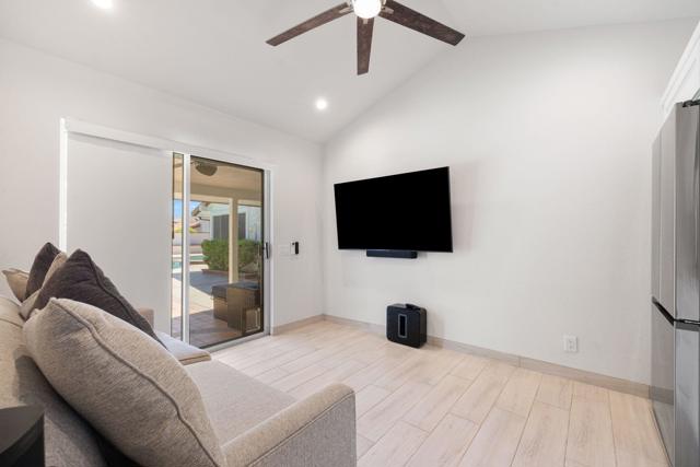 Step into refined desert living with this stunning custom estate in the prestigious Bermuda Dunes Country Club. Designed for both luxury and comfort, this exceptional home features four spacious bedrooms and three beautifully appointed bathrooms, including a private full casita complete with its own kitchen and bath--ideal for guests or extended family. Entertain effortlessly in your resort-style backyard, highlighted by a custom pool and spa with an exciting slide, expansive covered patios, and a fully equipped outdoor barbecue area. Enjoy evenings under the stars with an outdoor TV and shower, all surrounded by lush, meticulously designed landscaping and elegant patio pavers.Inside, the home showcases high-end finishes throughout, custom wood shutters on doors and windows, and ceiling fans in all the right places. Stay comfortable year-round with central air and heating, plus a dedicated mini-split system in the primary bedroom for added efficiency and a dedicated mini-split in the garage. Situated on a massive lot with a three-car garage and abundant additional parking, this property offers both privacy and convenience. Located just minutes from world-class golf courses, fine dining, shopping, and entertainment, this home perfectly blends upscale living with everyday accessibility.A rare opportunity to lease a true desert retreat--crafted for both grand entertaining and relaxed living.