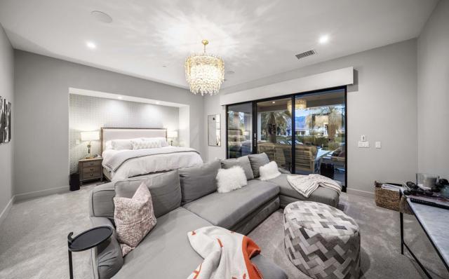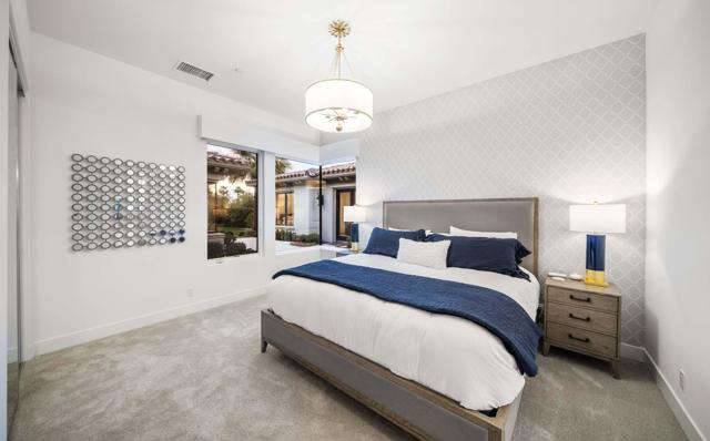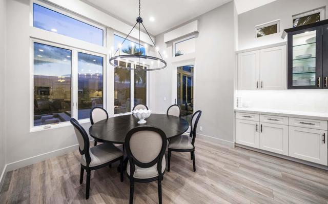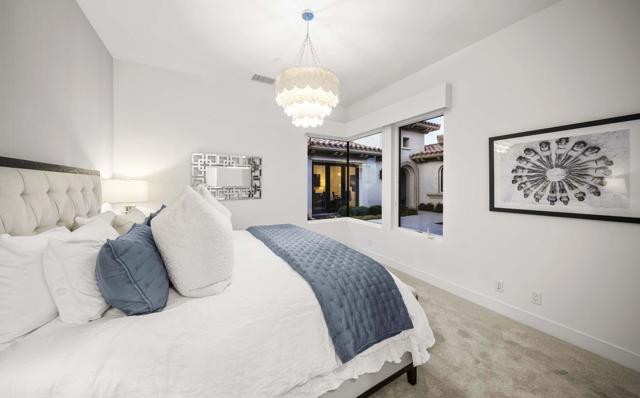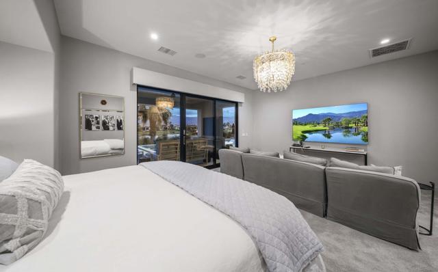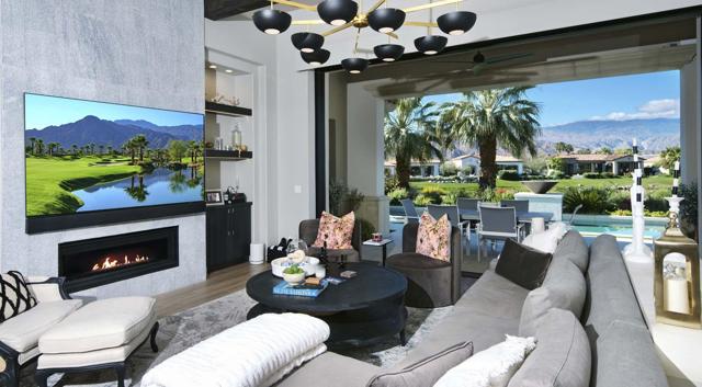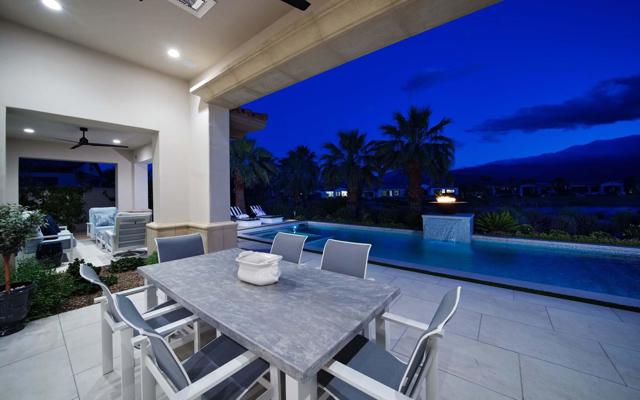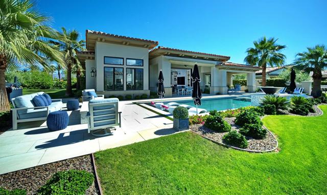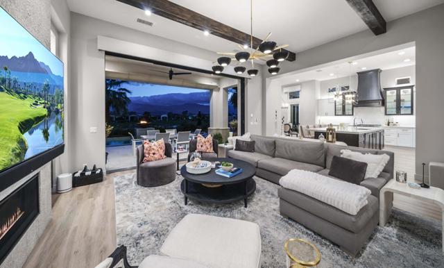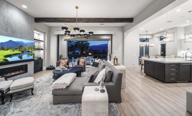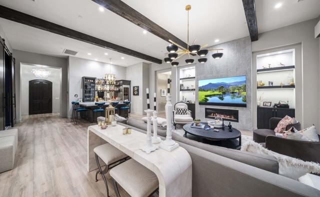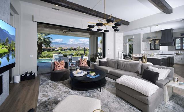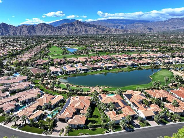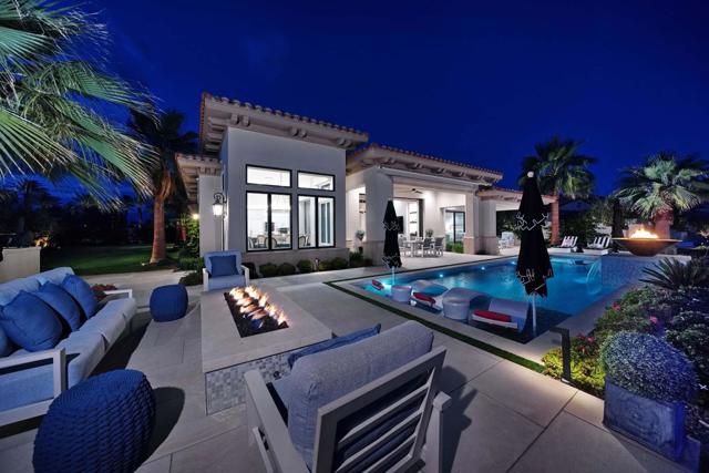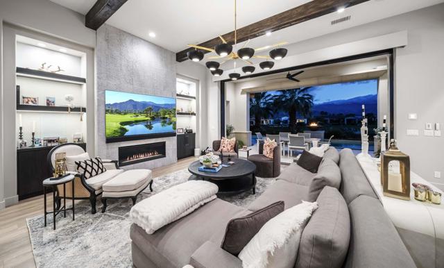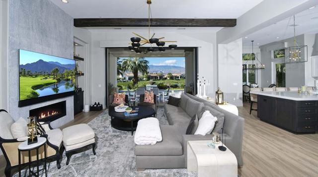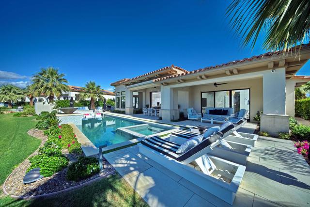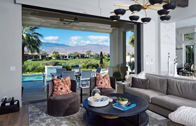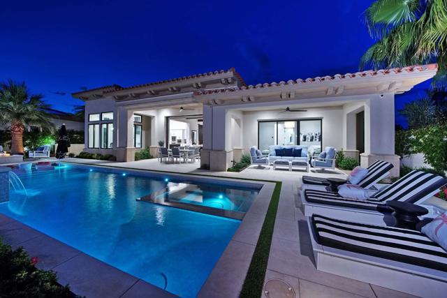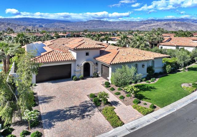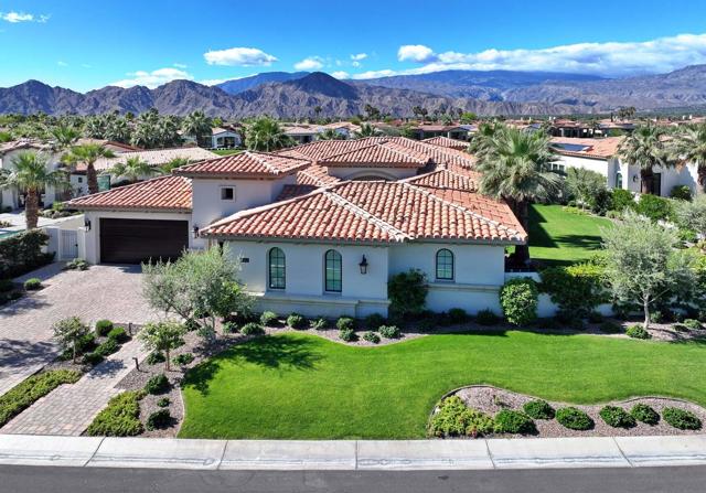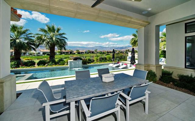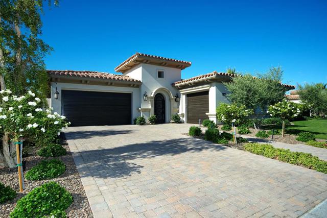 Set along the 7th hole of Toscana Country Club's Jack Nicklaus Signature North Course, this exceptional 2022-built residence showcases a rare Italianate-style Plan 722 with breathtaking south-facing lake and mountain views from an oversized homesite. Thoughtfully designed to capture the beauty of its surroundings, the home offers a seamless blend of timeless architecture and modern desert living.Expansive pocketing slider opens to the great room to inviting outdoor spaces, creating effortless indoor-outdoor flow ideal for both entertaining and quiet relaxation. The serene setting is enhanced by shimmering lake vistas and dramatic mountain backdrops, all bathed in warm southern exposure.Inside, the home is appointed with refined finishes and a well-designed layout, including a unique conversion of the formal dining room into a private movie room, complete with black drop-down shades for an elevated cinematic experience. The gourmet kitchen features premium appliances, custom cabinetry, and a generous island suited for both everyday living and hosting.Perfectly positioned within the prestigious gates of Toscana Country Club, this distinctive residence offers a sophisticated yet comfortable lifestyle, blending architectural character, modern amenities, and unforgettable views.