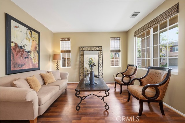 Welcome to this beautifully maintained home in the highly sought-after gated community of Altoliva in Tesoro Del Valle of Valencia. Offering 3 spacious bedrooms, including a primary suite with a generous walk-in closet, this home is thoughtfully designed for both comfort and everyday living. From the moment you walk in, you’ll notice the rich-toned flooring and calming, neutral paint palette that create a warm and inviting atmosphere. The open concept kitchen features stainless steel appliances, granite counter-height bar seating, and seamlessly opens up to the family room. It's just perfect for entertaining or simply enjoying time at home. Step outside to a cozy, low-maintenance backyard patio, which is ideal for relaxing evenings or casual gatherings without the upkeep. This floorplan offers an extended driveway leading to a clean 2-car garage. The extra-long driveway is great for small kids that like to play outside or for additional parking. This home is meticulously maintained and truly move-in ready, offering a lifestyle of ease and convenience. Living in Altoliva means enjoying all of the resort-style amenities that Tesoro Del Valle has to offer: including multiple pools, tennis courts, a basketball court, baseball diamond, clubhouse, recreation room, and a fully equipped weight room. It’s easy to see why this is considered one of the most desirable communities in Valencia. This is more than just a home. It's a lifestyle.