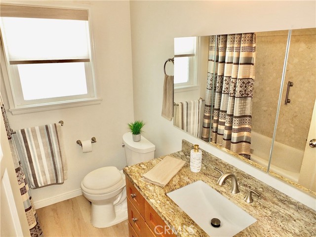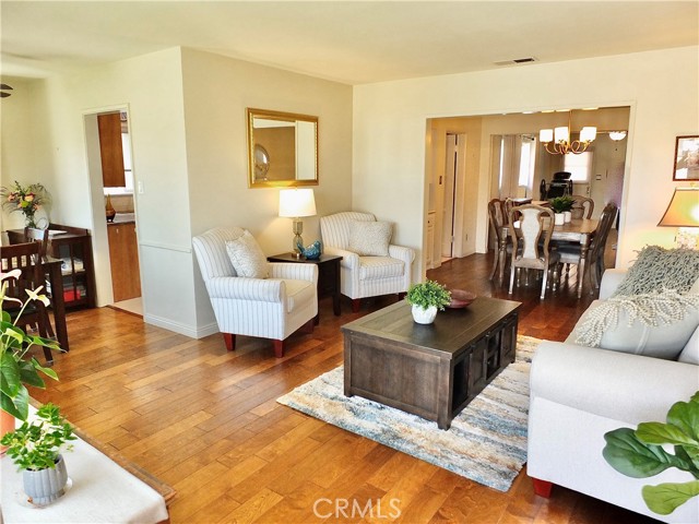 A charming and spacious 3 bedroom, 2 bathroom home with central AC… in the quaint Lakewood Park neighborhood of Long Beach… only minutes from restaurants, shopping, schools and freeways connecting to all of Southern California and the nearby beaches and coastline! The sun-filled living and dining rooms plus family room are dramatized by beautiful hardwood flooring. The renovated kitchen features custom countertops and cabinetry plus a dishwasher, stove, stainless steel refrigerator/freezer plus a laundry corner. A serving counter and glass doored display case is in the formal dining room. A cozy family room focuses on a fireplace wall with an insert for efficient heat flow. The front bedroom wing includes 2 bedrooms plus a renovated bathroom with a tub/shower. Secluded, the primary suite boasts a walk in closet and a private renovated bathroom with storage, a shower plus a door to the outside… plus bedroom sliding glass entry to the captivating step-down glass walled and doored sun room/garden retreat. Escape from it all in the tranquil rear grounds beneath a majestic towering shade tree. The long gated driveway, detached 2 car garage, storage sheds and patios are big pluses. A home of embracing natural warmth and comfortable open spaciousness.