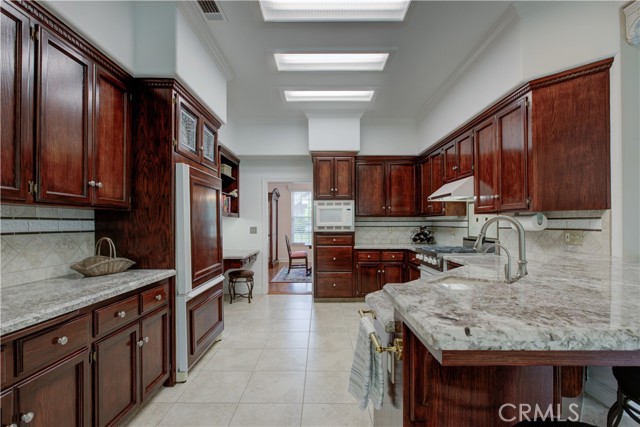First time on the market, this original-owner custom home offers a rare opportunity to own in Madera’s desirable Woodlands neighborhood. Framed by mature trees and exceptional curb appeal, this beautifully maintained residence showcases timeless architecture, generous scale, and quality craftsmanship throughout. A dramatic foyer with sweeping curved staircase sets the tone, while the private office/den and elegant dining room add both function and sophistication. Distinctive architectural details include transom windows, crown moldings, hand-textured wall and ceiling treatments, skylights, hardwood flooring in the dining room and study, and built-in cabinetry in the study. Designed for comfortable living and effortless entertaining, the home offers expansive gathering spaces, abundant natural light, and seamless flow into the gourmet kitchen featuring rich custom cabinetry, Viking range and hood, abundant counter space, breakfast area, and an impressive walk-in pantry. The spacious primary suite serves as a private retreat with vaulted ceilings, fireplace, large ensuite bath with soaking tub, separate shower, dual sinks, three walk-in closets, and private office near the front entrance. Valuable additional amenities include central vacuum, tankless water heater, dual central HVAC units, whole house fan, and an attached 3-car garage with workshop space in garage, 220V outlet in garage, and 220V outlet in garage for EV charging. French doors lead to the backyard, and the property is ideally located within the highly coveted Lincoln Elementary School District. A truly special offering in one of Madera’s most sought-after neighborhoods.