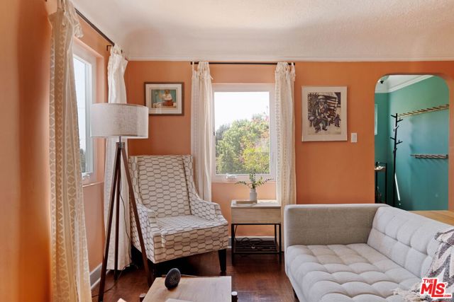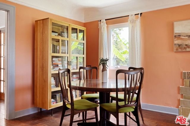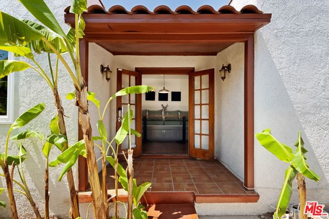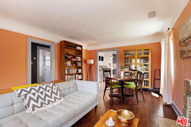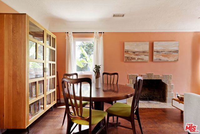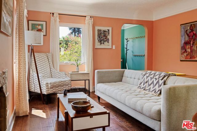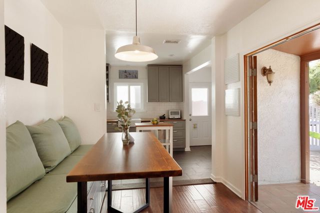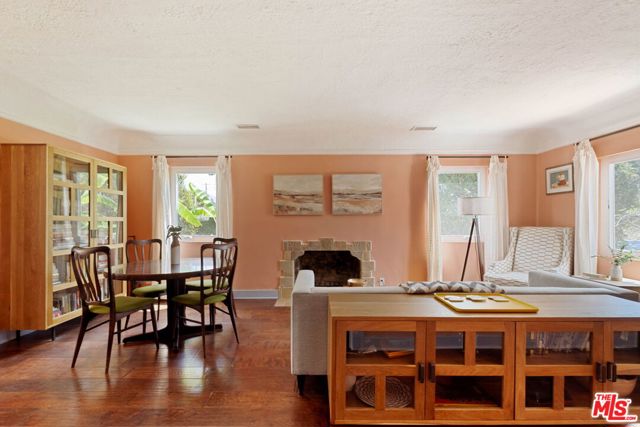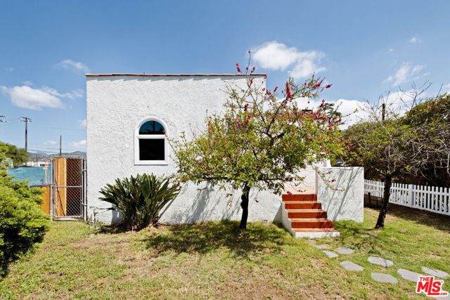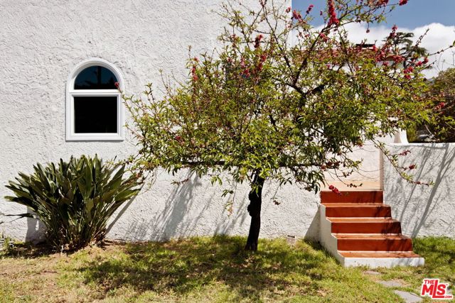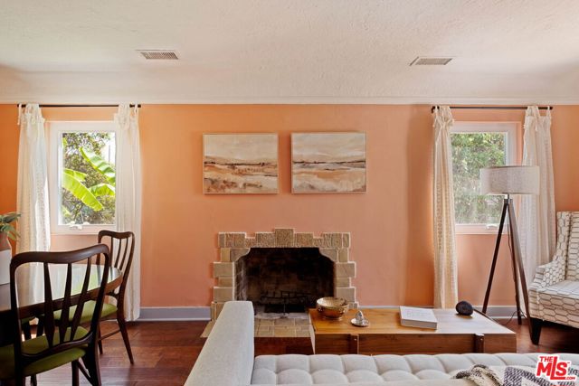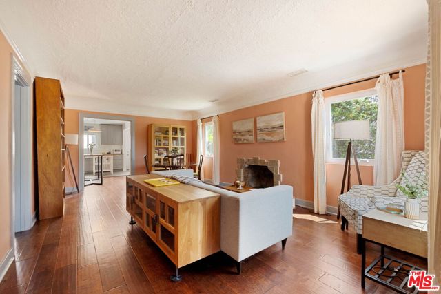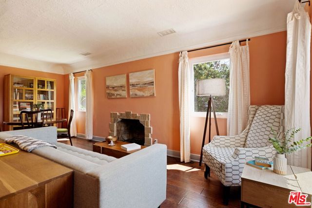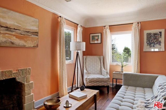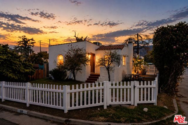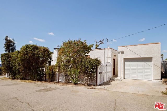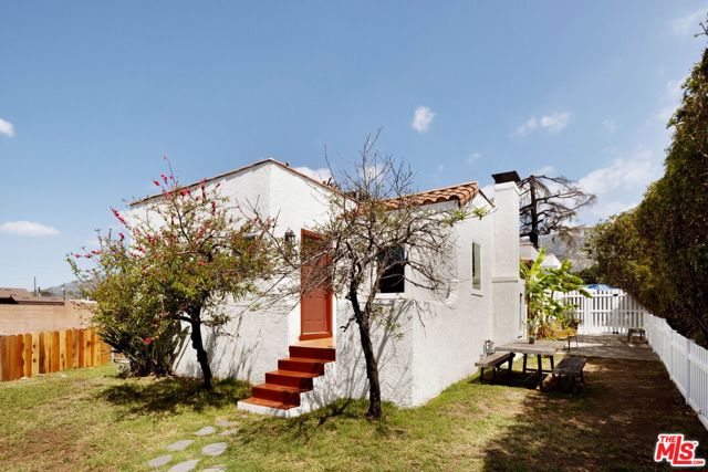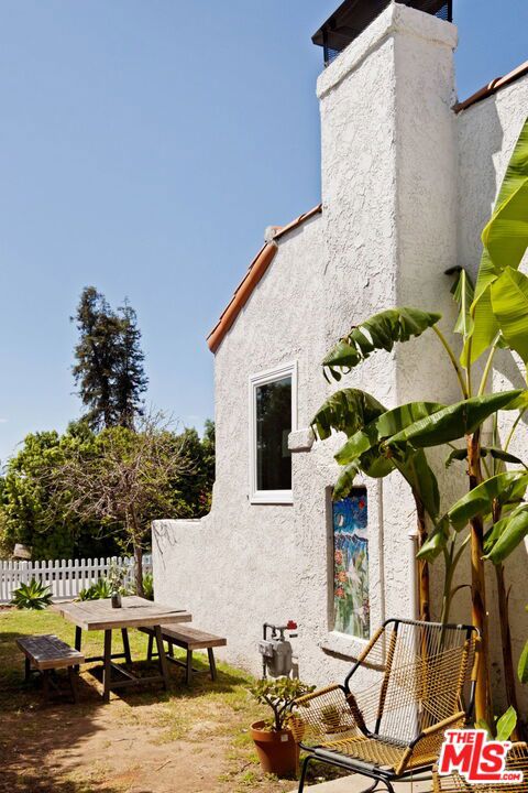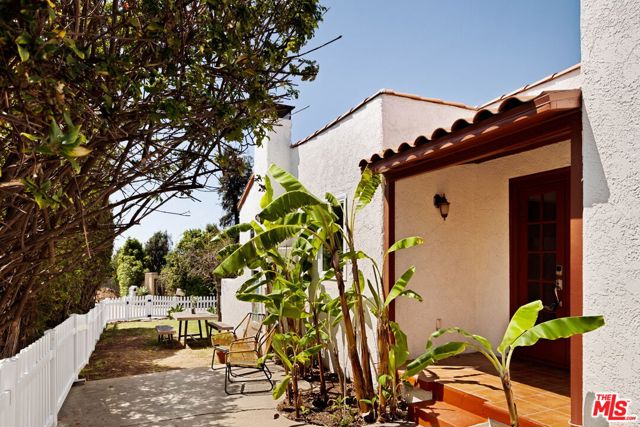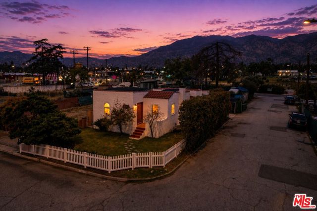 Tucked behind a white picket fence on a sun-drenched corner lot, this classic 1920s Spanish-style residence is a rare find. Tall hedges create an immediate sense of privacy and charm, setting the tone from the moment you arrive. Inside, an open floor plan with warm hardwood floors flows seamlessly from the living room to the dining area, offering a layout that feels both timeless and highly functional. The living room is filled with natural light and anchored by a striking fireplace adorned with handcrafted Calco Mayan tile. The kitchen blends character and practicality with tile flooring, butcher block countertops, a farmhouse sink, stainless steel appliances, wood cabinetry, a built-in wine rack, and a dedicated pantry. The dining area features a custom built-in bench, creating a comfortable and inviting space to gather, while a nearby private outdoor dining area framed by tall hedges is ideal for al fresco entertaining. The bedrooms are thoughtfully set on their own wing, providing separation and privacy. A spacious full bathroom is thoughtfully designed and offers ample storage. The newly built garage includes stacked laundry and a half bath for added convenience. Additional highlights include fully paid-off solar panels, an upgraded electrical panel, EV charging, new windows, and a new roof. Fully remediated and move-in ready, this home offers a rare blend of preserved 1920s character and modern upgrades.