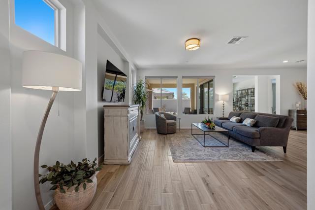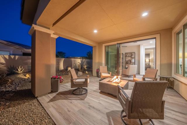 Fully Furnished...Pristine Clean...Lock & Leave Desert Located Just Around the Corner from the Clubhouse in Trilogy at the Polo Club. This gently lived in Monaco Model is perfectly positioned to offer warm morning light on the east facing back patio and beautiful desert sunset skies with mountain views from the cozy courtyard. The open floorplan offers comfort and flexibility for hosting and entertaining friends and family, with nice separation between the primary suite and guest bedroom. The convenient flex space off the great room can be utilized as a sunny sitting room, office, art studio or formal dining room. The thoughtfully designed kitchen features soft-close doors and drawers, accented backsplash, stainless steel GE Cafe appliances, prep island with pull-outs, bar seating, kitchen nook and pantry. Plantation shutters and custom window coverings throughout. Neutral wood-like tile flooring throughout the main living areas. Numerous art lights with dimmable switches to showcase your favorite artwork. The garage features a 50-amp EV charging outlet, built-in cabinetry, epoxy flooring, an A/C mini-split, and a water shut-off monitoring system. Offered Fully Furnished and Priced to Move, This Immaculate Property Wont Last Long. Schedule your showing today! Trilogy Polo Club Membership available for transfer.
