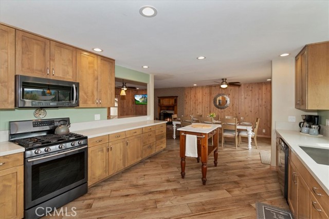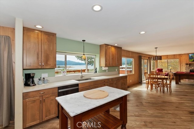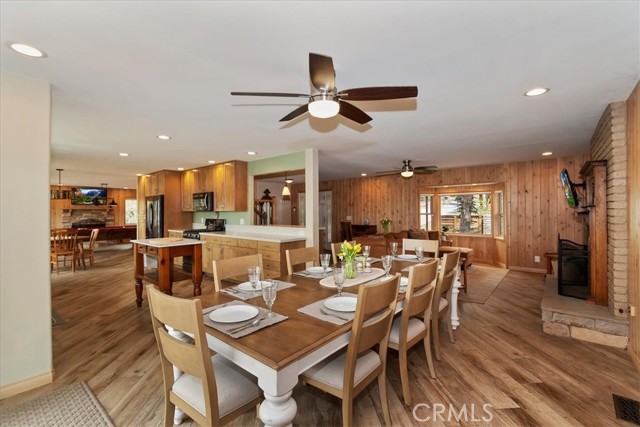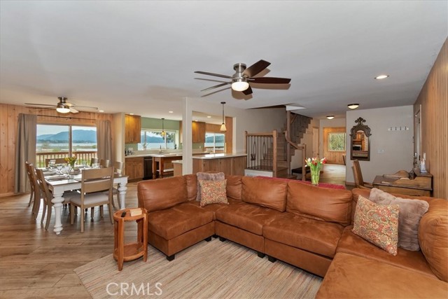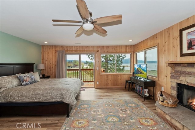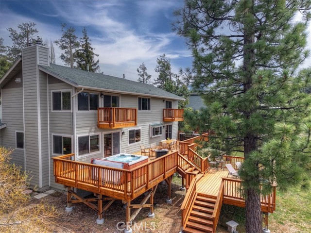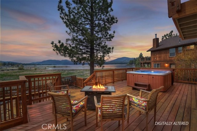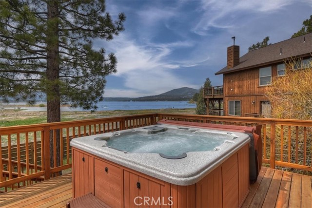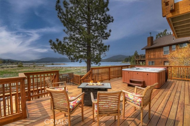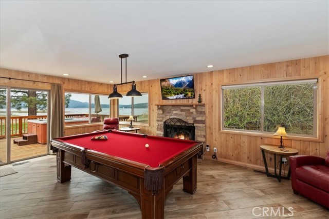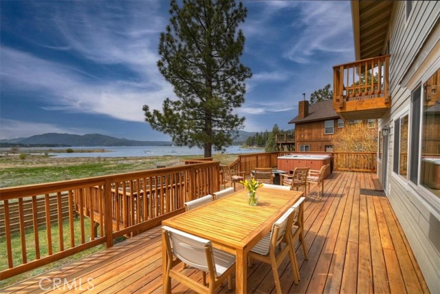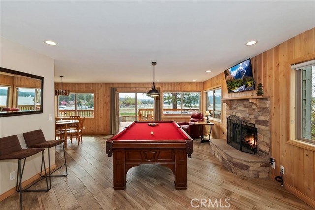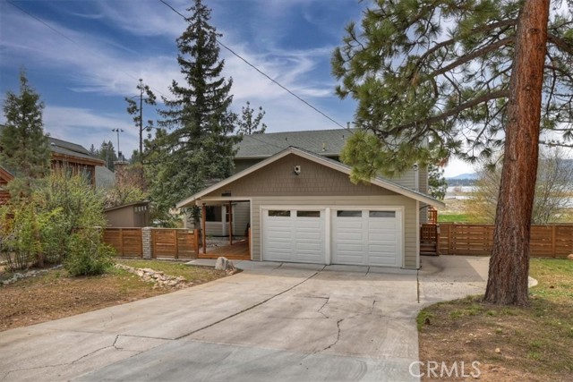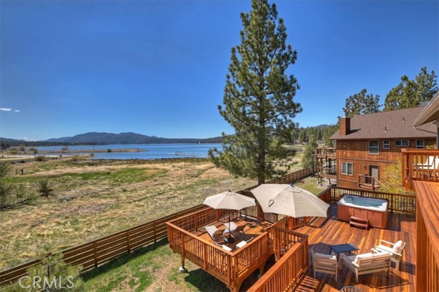 Welcome to lakefront living at its finest in the highly sought-after Eagle Point. Perfectly positioned on a generous 14,168 sq ft lot, this beautifully updated 4-bedroom, 3-bathroom home offers 2,755 sq ft of thoughtfully designed space and an unbeatable front-row seat to Big Bear Lake. Step inside to an open-concept floor plan designed for both comfort and entertaining, featuring a spacious living area anchored by one of three fireplaces, creating the perfect mountain ambiance year-round. The expansive kitchen is ideal for hosting, complete with alder cabinetry, ample counter space, and seamless flow into the main living and dining areas. This home was made for gathering and unwinding, with a separate game room featuring a pool table and its own fireplace—perfect for après-ski evenings or summer nights after a day on the lake. The primary suite is a true retreat, offering its own fireplace, added soundproof insulation for privacy, and a cozy, elevated feel. Thoughtful upgrades are found throughout, including cedar-lined closets, porcelain flooring downstairs, waterproof vinyl flooring upstairs, and a striking oak staircase that ties the home together with warmth and style. Step outside onto the back deck and take in what may be some of the most breathtaking sunset views in Big Bear. With lakefront access and dock rights, this property offers the ultimate waterfront lifestyle. Enjoy front-row seats to the 4th of July fireworks over the lake and the magical torchlight parade on New Year’s Eve—right from your own backyard. Complete with an attached 2-car garage and located in one of Big Bear Lake’s most desirable neighborhoods, this home is the perfect blend of luxury, comfort, and iconic mountain living.