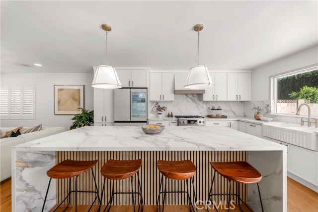 Beautifully remodeled home located in the highly desirable North Tustin area of Santa Ana. This 4-bedroom, 3-bathroom residence features a versatile floor plan with two spacious master suites, ideal for multi-generational living or added flexibility. The home offers an open-concept layout with abundant natural light, enhanced by large windows throughout. Hardwood flooring runs seamlessly across the living areas, creating a warm and modern feel. The bathrooms are tastefully designed with vintage-inspired finishes, adding unique character. The upgraded kitchen is equipped with high-end THOR appliances, perfect for everyday living and entertaining. Additional features include an in-home washer and dryer and a newly installed central air system for year-round comfort. Situated on an expansive 9,220 sqft lot, the property offers a large backyard with excellent potential for an ADU, outdoor entertaining space, or custom landscaping. Conveniently located near shopping, dining, and top-rated schools. This is a rare opportunity to own a turnkey home in one of Orange County’s most sought-after neighborhoods.