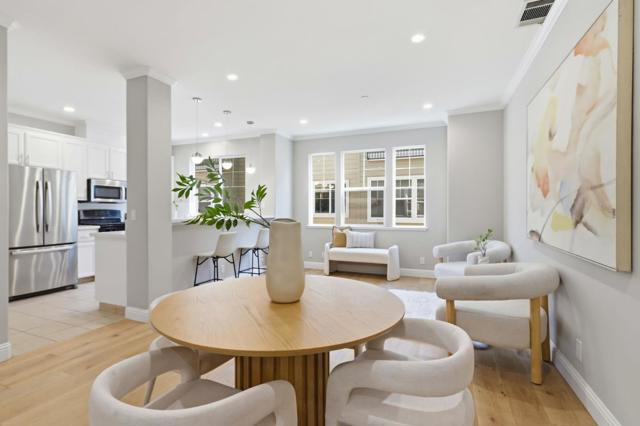 Welcome to a move-in-ready PUD townhome in Sunnyvale - true townhome ownership (not a condo) - bright and thoughtfully laid out for everyday living. This 3-Bedroom plus Office home offers an open main level where the living and dining areas flow into a refreshed kitchen with white cabinetry, stainless steel appliances, quartz countertops, gas cooking, and an oversized walk-in pantry. Enjoy engineered hardwood floor throughout (no carpet), fresh interior paint, central heat & A/C, and LED recessed lighting. Upstairs features three comfortable bedrooms, including a spacious primary suite with a walk-in closet with built-in shelving and a double-sink vanity. A ground-level bonus room is ideal for a home office or gym, plus interior laundry and a side-by-side 2-car garage. A commuters dream, conveniently located near Lawrence Caltrain (Quiet Zone/no-whistle), Lawrence Expressway, and Hwy 101, with quick access to Downtown Sunnyvale, Costco, coffee shops, dining, and major tech campuses including Apple, Google, LinkedIn, and NVIDIA. Good schools (buyer to verify). Low HOA approx. $310/month, includes trash.