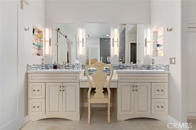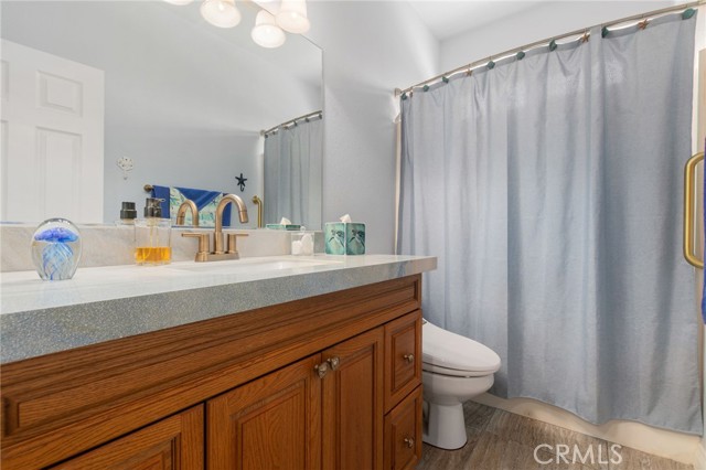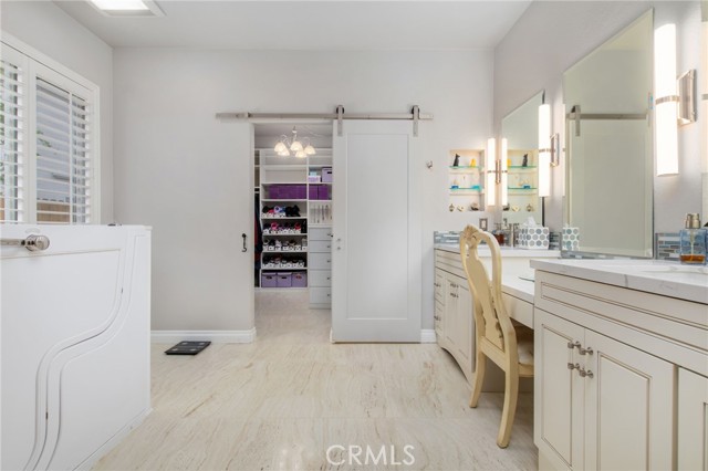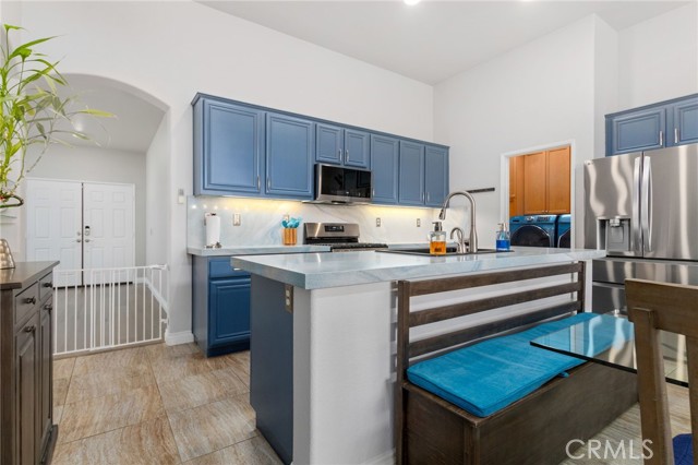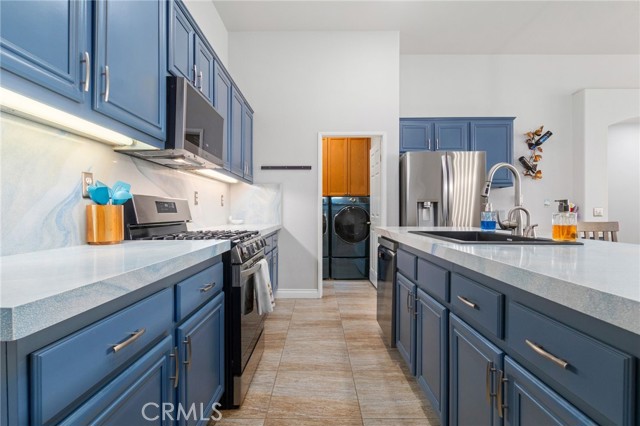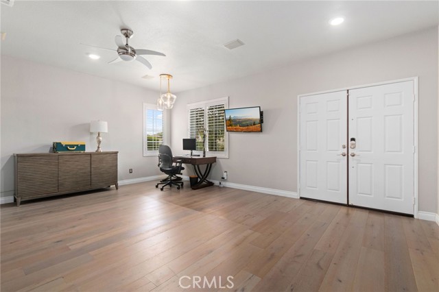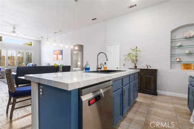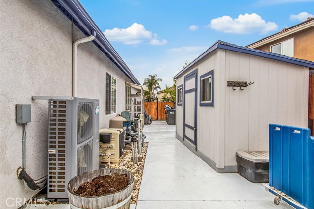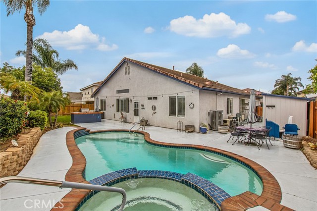 Beautifully upgraded single-story pool home offering a perfect blend of comfort, functionality, and California indoor-outdoor living. The open-concept floor plan features a spacious kitchen with a large island, tastefully refinished cabinetry with soft-close doors and pull-out shelving, and seamless flow into the main living areas; creating a bright and inviting space for everyday living and entertaining. Home has been meticulously maintained and includes plantation shutters throughout. The backyard is designed for enjoyment, featuring a private pool and spa, built-in BBQ with sink, lush landscaping, and palm trees. Pool entry handles have been added for ease of access, with plenty of space for gatherings or relaxation. Upgrades include a newer AC system, updated appliances, whole house fan, Flume leak detection system, and 30-panel paid solar. No carpet throughout for a clean, modern feel. Garage includes an EV charger. Wired surround sound speaker system adds to the home’s entertainment appeal. The primary suite offers an extended walk-in closet with built-in seating and a pull-down upper hanging rod. The upgraded primary bathroom includes a walk-in bath/shower and ADA-height bidet. Additional accessibility features include widened door hinges, ramp access from the garage, and a backyard ramp for ease of use. Gated side yard provides convenient access and usable space for RV, boat, or trailer parking. Located near La Ladera Park with easy access to shopping, dining, and the 215 and 15 freeways.