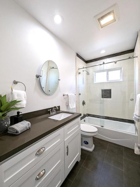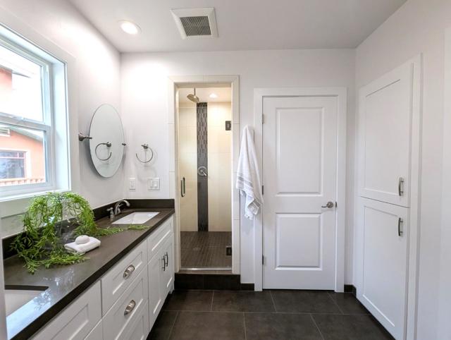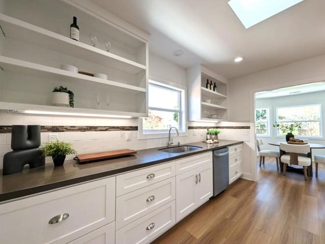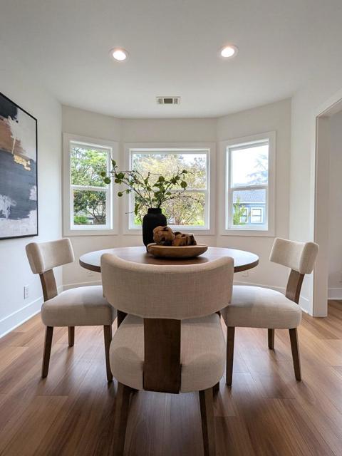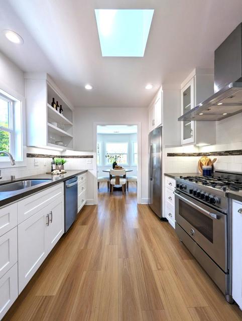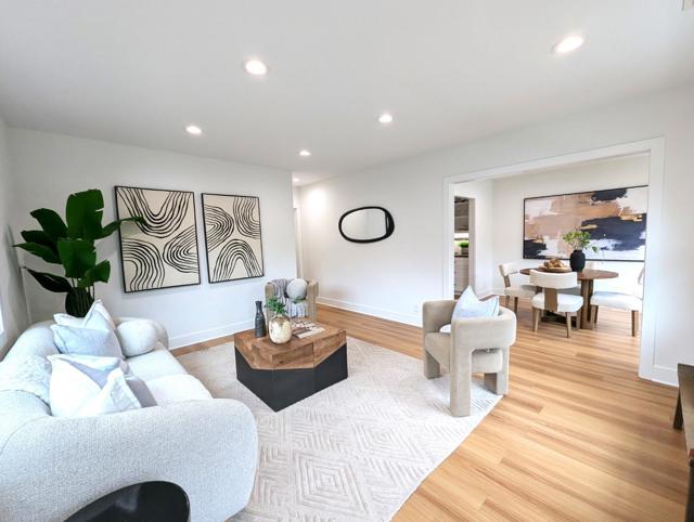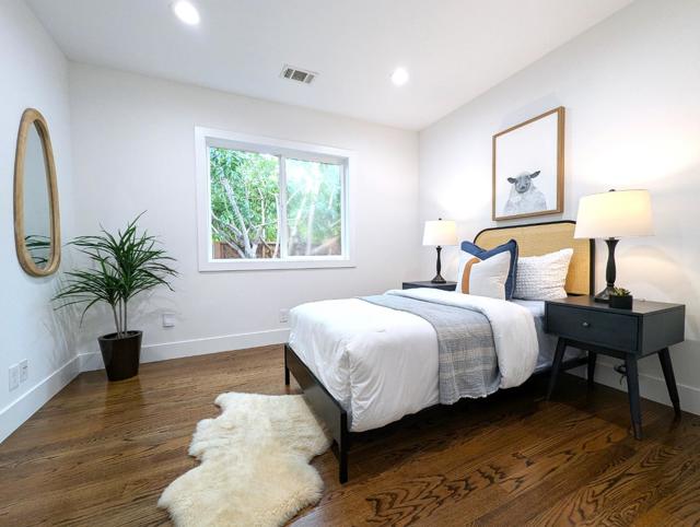 Beautifully remodeled single-level home in the heart of downtown Mountain View! Extensively renovated with a permitted addition in 2013, this residence blends classic charm with modern design and functionality . The thoughtfully designed floor plan offers approximately 1,345 sq ft of living space with 3 bedrooms and 2 bathrooms, filled with natural light throughout . The spacious living and dining areas feature wide-plank flooring, recessed lighting, and a seamless flow ideal for both everyday living and entertaining. The updated kitchen showcases quartz countertops, custom cabinetry, stainless steel appliances, and a skylight that enhances brightness. The private primary suite opens directly to the backyard, creating a true indoor-outdoor connection. Both bathrooms have been tastefully updated with modern finishes. Step outside to a beautifully landscaped yard with a patio area perfect for relaxing or hosting gatherings. A long driveway leads to a detached garage, offering additional parking and flexibility. Situated in a highly walkable neighborhood, this home is just moments from Castro Street dining, shopping, parks, Caltrain, and major Silicon Valley employers . A rare opportunity to own a move-in ready home in one of Mountain Views most desirable downtown locations.
