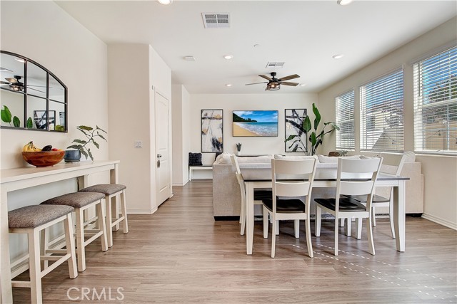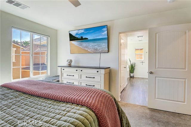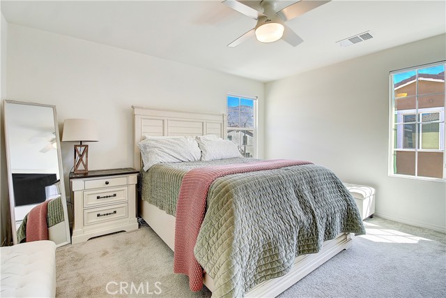 Welcome to this beautifully maintained 3-bedroom, 2.5-bathroom two-story home located within a desirable gated community, offering the perfect blend of comfort, style, and low-maintenance living. From the moment you arrive, the charming curb appeal and inviting front entry set the tone for what’s inside. Step into a bright and airy interior featuring a spacious open-concept layout, neutral tones, and abundant natural light. The living area flows seamlessly into the kitchen, creating an ideal space for both everyday living and entertaining. The kitchen is well-appointed with ample cabinetry, modern appliances, and a functional layout that opens to the main gathering space. A convenient half bathroom is located downstairs, perfect for guests. Upstairs, you’ll find a generously sized primary suite complete with a private en-suite bathroom featuring a soaking tub, separate shower, and plenty of natural light. Two additional bedrooms provide flexibility for family, guests, or a home office. Additional highlights include an upstairs laundry room for added convenience. The backyard offers a private and low-maintenance outdoor retreat, perfect for relaxing or entertaining. Enjoy cozy seating areas, clean hardscaping, and a peaceful setting with mountain views that add a beautiful natural backdrop. Additional features include a two-car garage and solar system (buyer to assume), helping with energy efficiency and long-term savings. This home is ideal for those seeking easy living with style—perfect for professionals, families, or anyone looking to enjoy a move-in ready space in a secure and well-kept community.