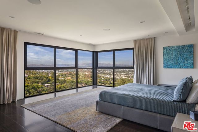 Sensational glass house designed by AIA award winning architect Jim Schmidt. Perfectly sited on a promontory with staggering mountain and city views. Grand scale rooms designed for entertaining and walls perfect for an impressive art collection. Located down a semi-private road off Mulholland Drive, this gated home offers the ultimate in privacy and security. The 2-story foyer captures the essence of a Modern home with walls of glass, Italian porcelain tile flooring and a striking steel architectural staircase. Living room opens to a sparkling pool and spa with Ipe deck and views that offer the perfect vacation vibe. Open kitchen, den, and dining room that create the heart of the home. Movie theatre, office, and powder room complete the main level. Upstairs is a gorgeous primary suite with a large closet and spa-like bath that opens to an outdoor deck perfect for meditation. There are 2 additional bedroom suites, each with jetliner views. In addition, there is an attached guest quarters perfect for an in-home office or gym. 2-car garage. Enjoy the quintessential California lifestyle in the heart of Los Angeles!