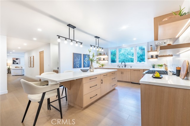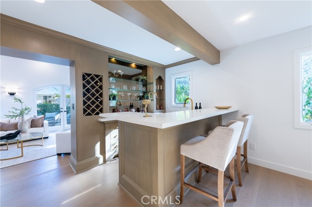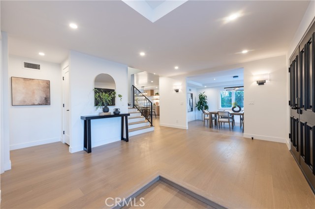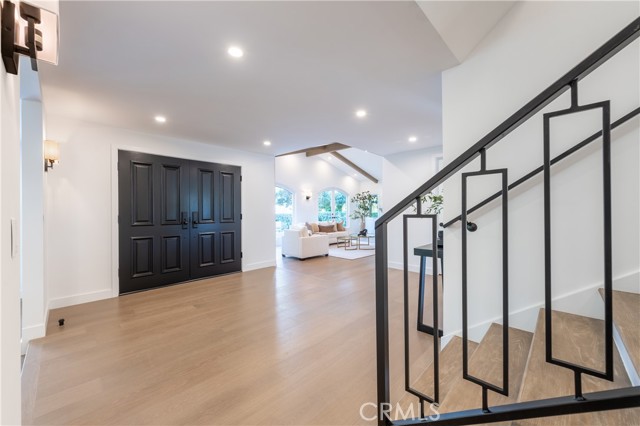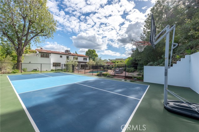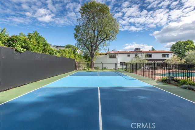 Set on nearly half an acre, this completely redesigned Spanish Transitional estate blends timeless architecture with modern luxury living. The grounds set the tone of the residence as a true resort-style sanctuary designed for year-round California living. A championship-style pickleball court anchors the recreational amenities while a gated pool and spa shimmer at the center of the landscape. Expansive brick-lined terraces, a pergola-covered lounge area, and generous stretches of manicured lawn create distinct zones for entertaining, unwinding, and gathering under open skies. This is outdoor living elevated into a private estate experience. Inside, soaring beamed and cathedral ceilings, wide-plank wood flooring, and bespoke architectural detailing set a tone of understated sophistication. Walls of glass and multiple sets of French doors dissolve the boundary between indoors and out, flooding the home with natural light and constant connection to the resort-like exterior. The chef’s kitchen is a statement in both form and function, anchored by a generous island with seating, stone surfaces, soft-close cabinetry, and premium appliances, including a 6-burner Wolf range and ovens. The adjoining family room is designed for elevated entertaining with a custom wet bar and integrated wine fridge, while the formal dining room offers a refined setting framed by designer lighting and tranquil views. Five en-suite bedrooms provide exceptional privacy and scale, including a spectacular primary suite that rivals a five-star resort. A fireplace, dual French doors to a private balcony, and a fully customized walk-in closet with its own wine fridge define the experience. The spa-inspired bath is pure indulgence, featuring a soaking tub, dual-person rain shower with integrated seating, dual vanities, a private water closet, and a second secluded balcony retreat. Located within the coveted Lanai School District and close to both Ventura Boulevard and the Westside, this is a rare offering where lifestyle, architecture, and location converge, created for those who expect nothing less than exceptional.