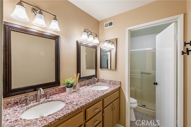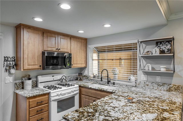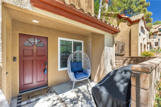 TASTEFULLY DONE UPGRADES is best to describe this adorable townhome! FANTASTIC LOCATION too! Away from road and like having your own pool in front of your home! OUTSTANDING Open floor plan! UPGRADES done through the years includes--NEW vinyl windows, NEW high end laminate flooring, CUSTOM kitchen cabinets, GRANITE counter tops in kitchen. REMODELED bathrooms-half bath downstairs and two full bathrooms upstairs, wood stairs, wood blinds and CEILING FANS! Close to shopping, restaurants and places of worship. Santa Clarita living at its best!