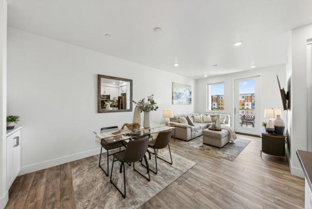 Experience elevated modern living in this beautifully appointed 1,152 sq ft, 3-bed, 2-bath corner residence, ideally situated on the fourth floor with rare mountain views from every room. Built in 2022 in Fremonts highly sought-after Irvington neighborhood, this home blends comfort and style. Step inside to high ceilings, recessed lighting, & stunning LVP flooring with an open-concept layout. The gourmet kitchen flows seamlessly into the family room, featuring quartz countertops, shaker white cabinetry, gas range, & stainless steel appliances. Enjoy your morning coffee or unwind on the private balcony overlooking mountain views. A convenient washer and dryer closet adds everyday functionality. The primary suite features mountain views, abundant natural light, a walk-in closet, and a spa-like ensuite bath with double vanity and step-in shower. Two additional bedrooms are well-sized, ideal for guests, family, or an office. Additional highlights include two parking spaces in a secure gated garage + secure building entry. The community also offers a fitness center and playground. Ideally located near Apni Mandi Farmers Market, and top-rated Hirsch Elementary and Irvington High. Modern design, premium features, and an unbeatable location make this a rare opportunity not to be missed.