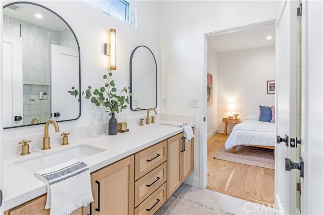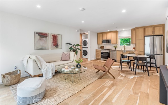 Nestled in the highly desirable Frogtown neighborhood of Los Angeles, this exceptional property features a fully REMODELED Spanish/Modern Organic main residence and a detached guest house (ADU), ideally situated on a quiet cul-de-sac just steps from the LA River walkway. This unique offering seamlessly blends timeless character with modern design and income potential. The main residence offers 3 bedrooms and 2.5 bathrooms, highlighted by a bright, open-concept floor plan designed for effortless living and entertaining. High-end finishes include custom oak cabinetry, hardwood flooring, Caesarstone countertops, and designer tile throughout. The primary suite features a spacious walk-in closet, and the home is complete with an interior laundry closet with washer and dryer. Seamless indoor-outdoor flow leads to a private outdoor seating and dining area with a built-in BBQ—perfect for enjoying Southern California living. The property also features a gated entrance with secure on-site parking and a Tesla charger, providing both convenience and modern functionality. The detached ADU offers a versatile open layout with living, dining, and kitchen areas, fully equipped with a dishwasher, range, microwave, and refrigerator. Additional highlights include a stackable washer and dryer, ample storage, a bright bedroom with French doors opening to a private patio, and a beautifully tiled bathroom. Ideal for guests, a home office, studio, or rental income. Located in one of Los Angeles’ most vibrant and sought-after neighborhoods, the property offers convenient access to the LA River path, local hotspots, dining, shopping, and nearby freeways. A rare opportunity to own a turnkey property offering style, flexibility, and an exceptional lifestyle.