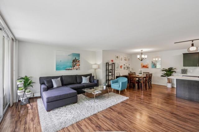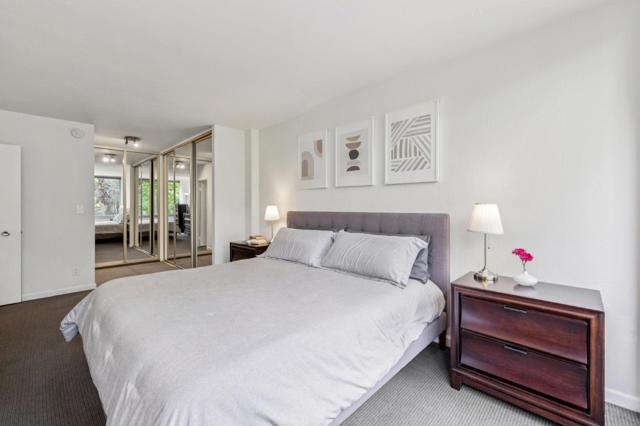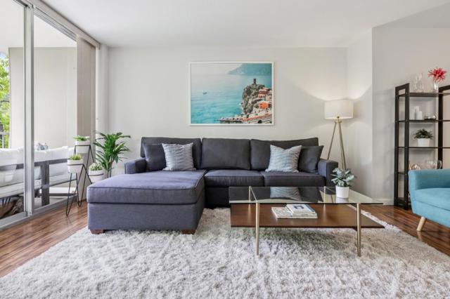 Wake up surrounded by light, space, and privacy. This spacious condo blends clean design with everyday ease, featuring floor-to-ceiling, wall-to-wall windows in the living room that frame peaceful treetop views and open to an expansive deck that extends the living experience outdoors. The updated kitchen showcases quartz countertops, a custom tile backsplash, under cabinet lighting, and stainless-steel appliances. The remodeled bathrooms offer a fresh, refined look with quartz countertops, custom tile surrounds at the tub and showers, and newly tiled floors. Laminate plank flooring carries throughout the home, adding warmth and continuity to the living spaces. Closet organizing systems add thoughtful function throughout. The result is a home that feels open, calm, and beautifully livable. Secured entry, 2 covered parking spaces, an additional storage space, and resort-style amenities including 2 pools, 2 spas, a fitness center, billiards room, and a community room with bay views elevate daily life. This is the kind of home that makes coming back the best part of the day. Come experience the light, scale, and serenity for yourself.