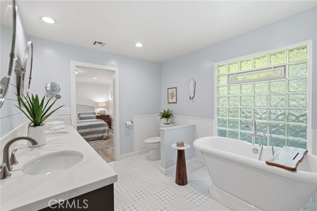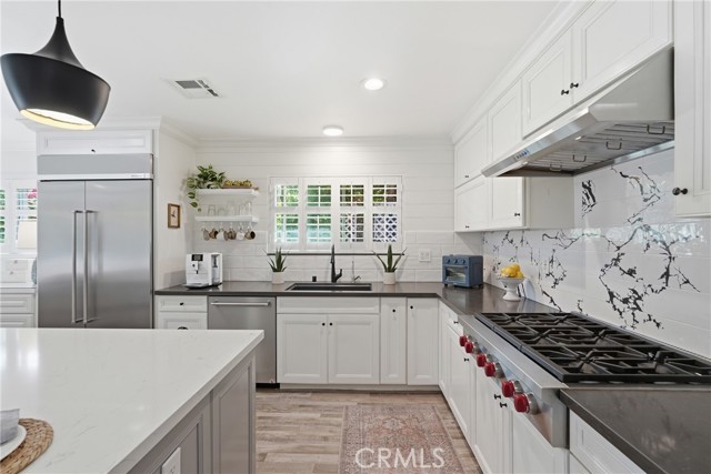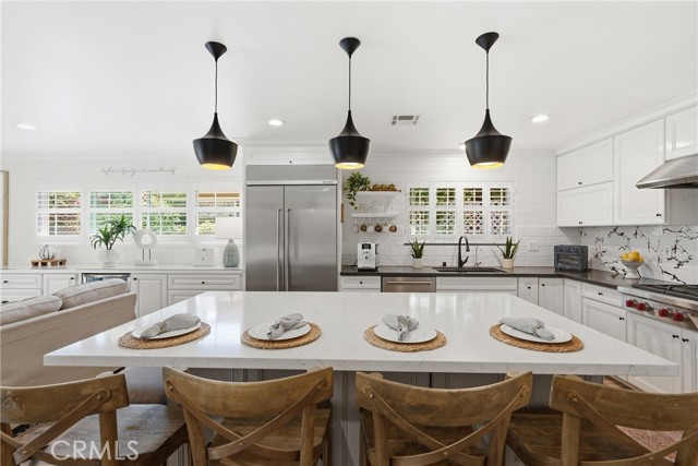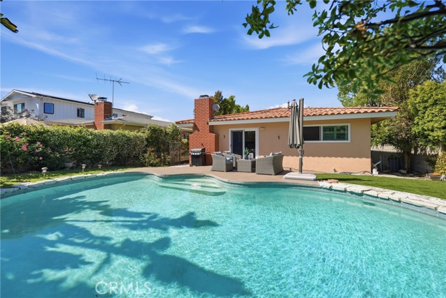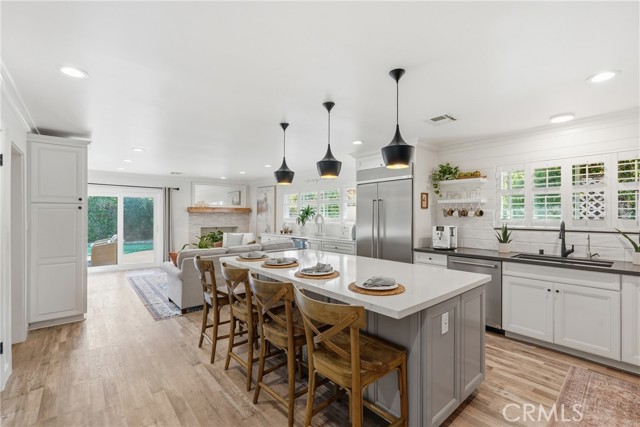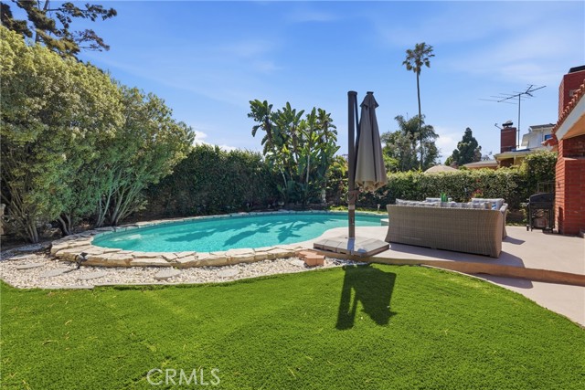 This tastefully updated single-level Roth home offers 3 bedrooms and 2 bathrooms across a spacious 7,200 sq ft lot in one of Manhattan Beach’s most desirable neighborhoods. Luxury laminate flooring runs throughout, creating a cohesive and modern feel. Step into an oversized living room filled with natural light, featuring vaulted ceilings, crown and base molding, and direct access to the attached garage. The generous layout flows seamlessly into a dining area, creating an inviting space that easily accommodates both everyday living and formal entertaining. The fully remodeled kitchen is designed for gathering, featuring high-end appliances, a large center island, and an open flow into the family room. A warm fireplace anchors the space, while seamless access leads to a lush, private backyard—complete with a sparkling pool—perfect for indoor-outdoor living and entertaining. Outside, enjoy a peaceful and private south-facing backyard designed for year-round coastal living. Thoughtfully designed for comfort and privacy, the bedroom wing includes two generously sized guest bedrooms and a beautifully remodeled hall bathroom. The primary suite serves as a serene retreat, offering a spa-like bathroom with elegant tile flooring, a walk-in shower, and a soaking tub. Located on a wide, tree-lined street just blocks from award-winning schools, this home is within close proximity to the beach and just minutes from Manhattan Village’s premier shopping and dining. A rare opportunity to own a turnkey Roth home that perfectly blends style, comfort, and location.