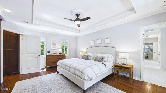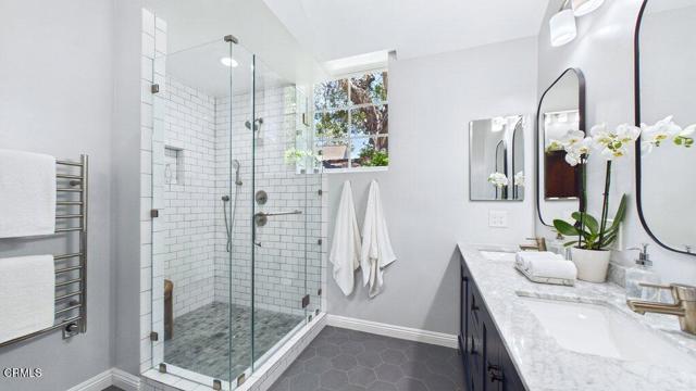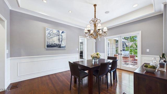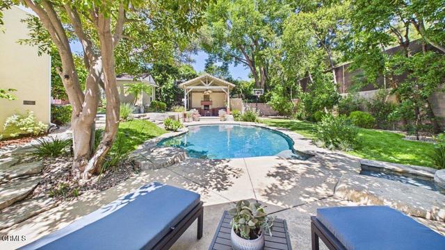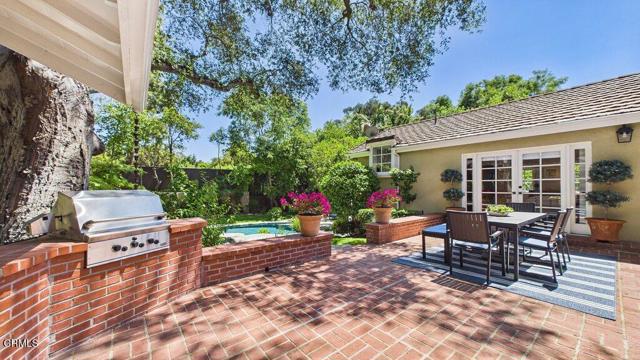 Nestled on a charming cul-de-sac in the highly coveted 'Vale of Annandale' enclave of Pasadena's prestigious San Rafael Hills neighborhood, this beautifully reimagined residence blends timeless elegance with modern indoor-outdoor amenities and living. Originally built in 1940 and thoughtfully transformed, the home offers an exceptional layout designed for both everyday comfort and effortless entertaining. From the formal entry with its cathedral ceiling, you are immediately drawn to a spacious living room featuring an elegant fireplace--ideal for both quiet evenings and stylish entertaining with an integrated media screening system. The family room includes custom floor-to-ceiling built-ins and breathtaking views of the lushly landscaped rear grounds. Throughout the home, French doors in the kitchen, dining room, den, and primary bedroom invite natural light and create a seamless connection to the outdoors. The main level offers a beautifully remodeled chef's kitchen that flows into the formal dining room, along with four generous bedrooms and four full bathrooms featuring updated finishes. Notable amenities include: Integrated Technology: Surround sound with built-in speakers inside and out; Smart home features including remote control of pool, spa, lighting, heating and cooling. Wine Cellar: A downstairs space capable of storing 2,000 bottles. Versatile Attic: A bonus 940 sq. ft. finished upper level with storage, a holiday planning and gift-wrapping station, and flexible space for an office, studio, or lounge. The private backyard retreat is an entertainer's dream, featuring a brick patio, built-in gas grill, and an outdoor living room with a fireplace. The grounds also include a sparkling pool with waterfalls, a resort-like spa, a sports court, and a golf putting green. Multiple spaces invite comfort, relaxation and entertaining in a serene, resort-like setting. Ideally located just a few minutes from Old Town Pasadena and the trails of South Arroyo, the Rose Bowl, and DTLA, and in close proximity to beloved local favorites including Little Flower, Stoney Point, San Rafael Park & Library, this unique and exceptional property offers a rare blend of privacy, sophistication, and lifestyle with modern convenience in one of Pasadena's most desirable and prestigious locations. The combined main level, wine cellar and bonus upper level attic space brings a total of 3,821 sq ft making this a highly coveted, unique and rarely available property.