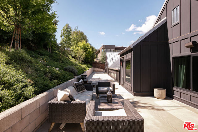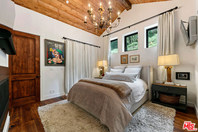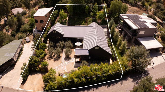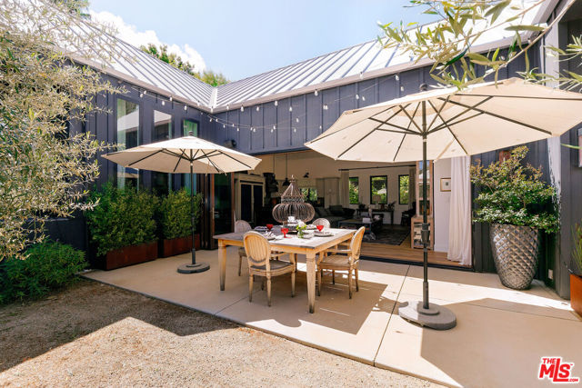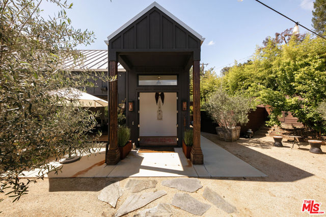 Set on a quiet, tree-lined street in the Malibou Lake community, just moments from the trailhead at Malibu Creek State Park, this 2022-built home feels like a private retreat - equal parts peaceful escape and creative sanctuary. There's an immediate sense of calm here. Mornings begin with soft canyon light filtering through the trees, afternoons drift into walks to the park, and evenings unfold beneath sparkling string lights, gathered around al fresco dining. Nestled in the foothills of the Santa Monica Mountains, the setting is idyllic - lush, grounded, and deeply connected to nature, yet only minutes from Malibu, Calabasas, Cornell, and the heart of Agoura. Inside, the home blends thoughtful modern design with warm, rustic character. Real hardwood floors run throughout, complemented by soaring cathedral ceilings and 25-foot accordion doors that open to outdoor spaces while framing serene mountain views. The heart of the home is the gourmet kitchen with a generous center island, bar seating, and Viking appliances. Natural light fills each room, highlighting the textures and tones that give the home its quiet charm. Designed in a barn-style aesthetic, the layout balances connection with moments of retreat, with multiple outdoor lounge areas and a jacuzzi tucked into the landscape for a quiet unwind. The grounds feel curated yet organic, with olive trees, roses, and fruit trees creating a setting that invites you to slow down and meander. Outfitted with Sonos speakers throughout and wired with Cat 6, the home is equally suited for relaxed living and elevated entertaining. A professional music studio reflects the home's creative spirit, offering flexible use as a studio, bedroom, office, or additional living space. A durable metal roof and extensive fire-wise construction paired with a fire-conscious community design offers a rare level of resilience and long-term cost efficiencies, while a two-car garage offers space for storage or a workshop. Set against rolling hills and surrounded by nature, this home invites you to slow down, create, entertain, and live with intention. A true Malibou Lakeside retreat - peaceful, inspiring, and ready for its next chapter.