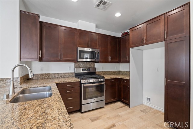 Beautiful 2-bedrooms, 2-bathrooms turnkey townhouse built in 2017! This desirable end-unit home is located in the gated Sunstone community. Enjoy a spacious living room with a built-in cabinet and access to a private balcony. The modern kitchen offers ample cabinetry and quartz countertops. Both bedrooms are spacious, including a primary suite with a walk-in closet. Additional highlights include fresh interior paint, brand-new carpet, There is direct access downstair 2 cars garage with built in cabinet. Conveniently located with easy access to the 5 and 605 freeways.The Sunstone community offers great amenities, including a children’s play area, picnic tables, a covered patio, and BBQ areas.
