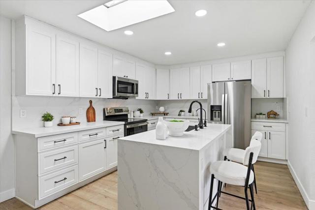 Welcome to this meticulously maintained North Fremont residence, where modern elegance meets functional design. Extensively renovated in 2022, this 3-bedroom, 2-bathroom home offers 1,148 sqft of refined living space, further enhanced by a versatile 228 sqft family room perfect for entertaining or a home office. At the heart of the home lies a sun-drenched chefs kitchen, boasting a signature skylight, custom island with integrated sink, and premium electric cooktop. The seamless flow leads to a spacious dining area and a separate living room, featuring an updated electric fireplace that creates a warm, inviting retreat. High-end upgrades include new designer flooring throughout, fully remodeled bathrooms, and recessed lighting. Step outside to a private, fully fenced oasis with lush greeneryperfect for summer gatherings. Complete with a two-car garage and forced air heating, this turn-key gem is ideally positioned within the prestigious Fremont Unified School District, offering unparalleled access to top-rated schools, local parks, and major commuter routes.