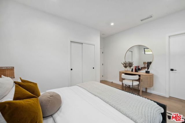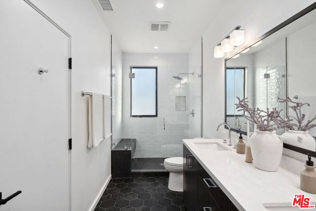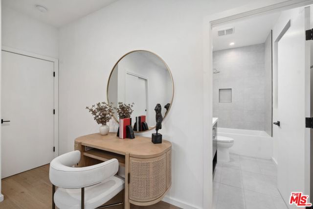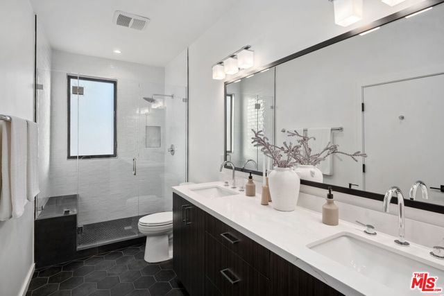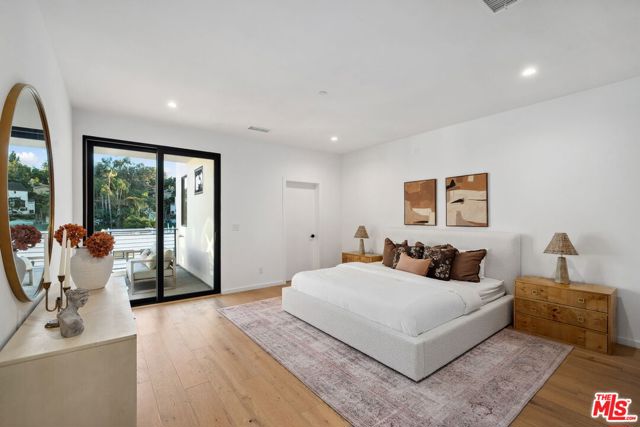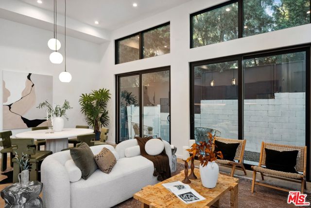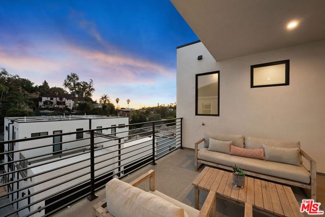 A sun-drenched designer residence that effortlessly blends elevated style with everyday livability, offering seamless indoor-outdoor flow, modern systems, and a peaceful setting just moments from the energy of Hollywood. Vaulted ceilings and a surround-sound living room create an inviting, light-filled space that opens beautifully into a formal dining area and a thoughtfully designed chef's kitchen featuring Thermador appliances, custom cabinetry, Carrara marble countertops, and an oversized island perfect for gathering. Expansive sliding glass doors disappear to reveal a serene and private patio, an ideal backdrop for morning coffee, alfresco dining, or unwinding at sunset. Upstairs, the primary suite is a true retreat, complete with a private balcony showcasing city vistas, a spa-inspired bath with a freestanding soaking tub and dual marble vanities, and a custom walk-in closet. Two additional en-suite bedrooms offer versatility for guests, a home office, or creative space. Additional highlights include a direct-entry two-car garage and a thoughtfully designed floor plan that balances openness with privacy. Set within an exclusive enclave of just four newly built (2023) small lot residences, this home offers a rare sense of privacy while remaining minutes from Hollywood's iconic dining, entertainment, studios, and scenic trailheads. A refined blend of elegance, comfort, and convenience designed for the way you live today, and the lifestyle you've been waiting for.