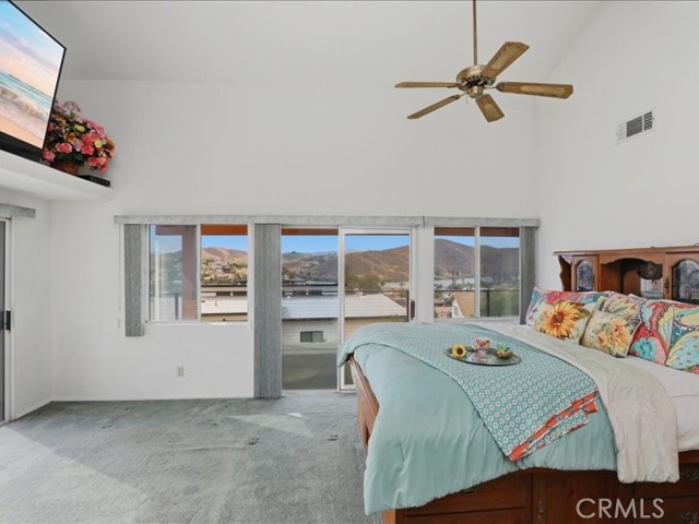 Perched to capture one of the most breathtaking vistas in Canyon Lake, this exceptional 3-bedroom, 2.5-bath, 2,306 sq. ft. two-story home offers a truly stunning million-dollar view of the main lake, rolling hills, and unforgettable sunsets. With one bedroom conveniently located downstairs, this thoughtfully designed home blends comfort, style, and resort-style living. This spacious home includes one downstairs bedroom, soaring 12-foot ceilings in the living room, a marble fireplace, and a family room/kitchen combo with a cozy wood-burning fireplace. Enjoy outdoor living with 770 sq. ft. of covered patio space perfect for entertaining, plus a 600 sq. ft. Balcony/Deck off the oversized primary suite with incredible lake views. Beautiful award-winning landscaping and custom stained-glass entry add to the charm. Recent upgrades include a new water heater, sump pump, upstairs A/C unit, renovated balcony/railings, updated bathrooms, and whole-home soft water filtration system. As an incredible bonus: Included with the purchase is a 19ft Carlson Signature Series Glastron Boat featuring a new engine and trailer—your ticket to enjoying the Canyon Lake lifestyle in true James Bond style.