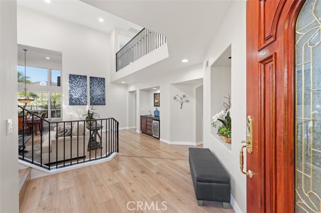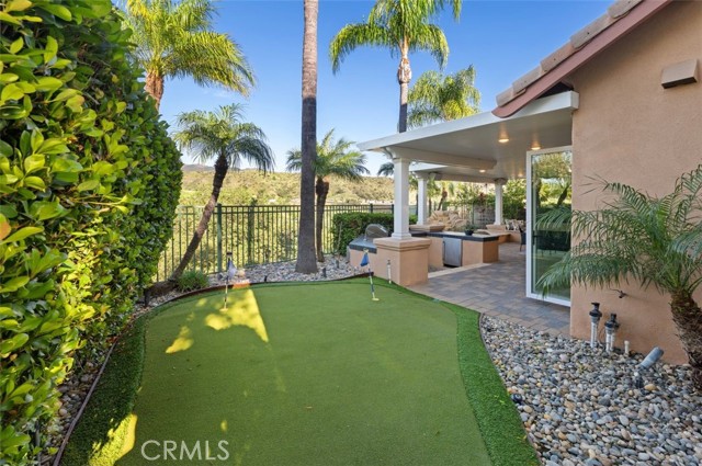 Welcome to STUNNING 6 Beaconsfield in Dove Canyon—where luxury living meets GORGEOUS PANORAMIC VIEWS of rolling hills, canyon landscapes. Nestled within the exclusive, guard-gated community of Dove Canyon, this wonderful Westcliff home offers some of the most spectacular views in the neighborhood. From the moment you step inside, you are greeted by a grand entrance with soaring ceilings and an abundance of natural light pouring through expansive windows. This beautifully upgraded home features four spacious bedrooms and three and a half bathrooms, including a convenient main-floor bedroom and bath—perfect for guests or multi-generational living. Designed for seamless indoor-outdoor living, the home showcases 3 total fire places for cozy evenings, and exquisite folding glass doors that open to the backyard, creating an airy, open-concept feel. The fully remodeled chef’s kitchen is a true showstopper, featuring quartz countertops, decorative glass backsplash, brand-new stainless-steel appliances, and a new refrigerator—perfect for both everyday living and entertaining. Upstairs, enjoy a versatile media/bonus room ideal for movie nights, a home office, or a play area. Throughout the home, you will find new premium wide plank flooring, three beautifully remodeled bathrooms, elegant wrought iron railings, a new tankless water heater, and included washer and dryer—every detail thoughtfully upgraded. Unwind in the luxurious primary suite, complete with a cozy fireplace, private balcony with serene canyon views, dual walk-in closets, and a spa-inspired bathroom featuring dual sinks, a walk-in shower, and a soaking tub. Step outside to your private backyard oasis, designed for relaxation and entertaining. Enjoy the spa, putting green, built-in BBQ, lush landscaping, and multiple seating areas—perfect for hosting family and friends. As a resident of Dove Canyon, you will have access to resort-style amenities including a pool and spa, tennis and pickleball courts, a tot lot, basketball court, and 24-hour security. Optional membership to the prestigious Dove Canyon Golf Club offers a Jack Nicklaus-designed course, fitness center, dining, and social events—enhancing the exceptional lifestyle this home provides. Do not miss this rare opportunity—schedule your showing today and start packing!