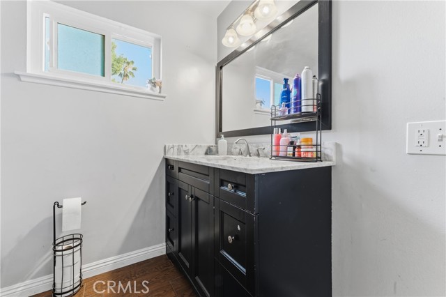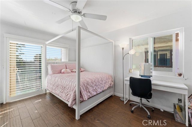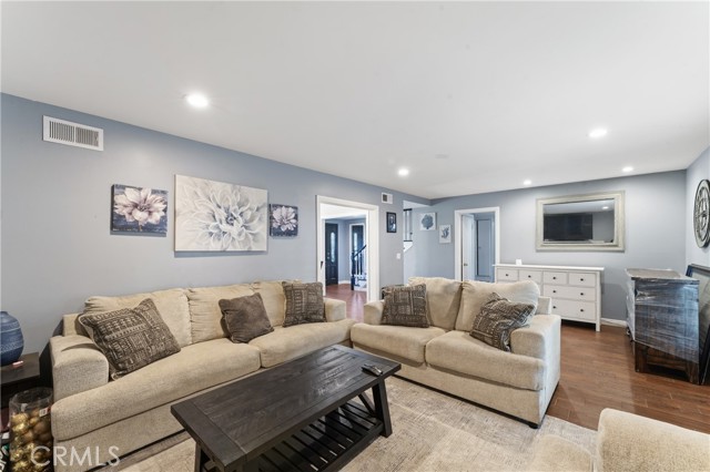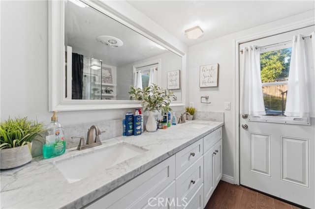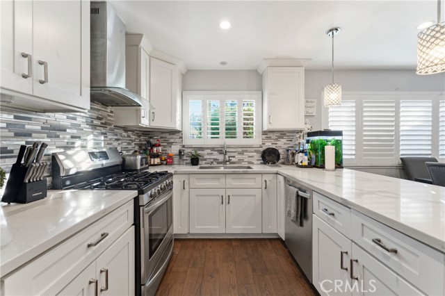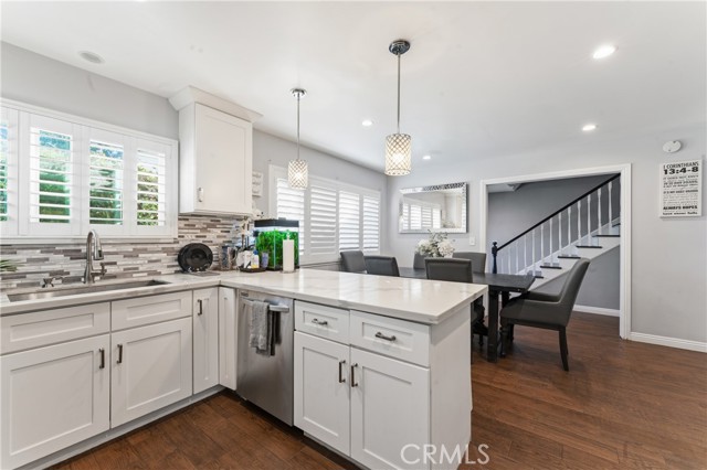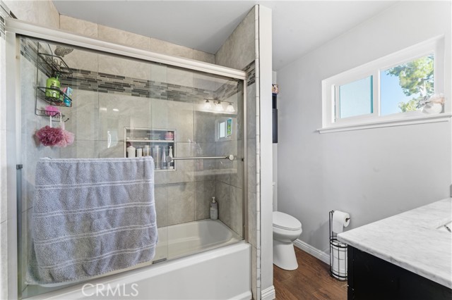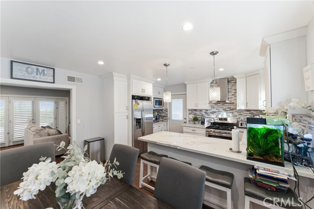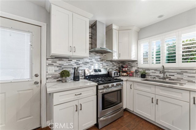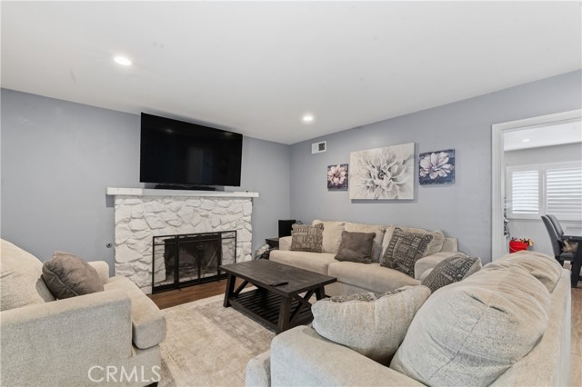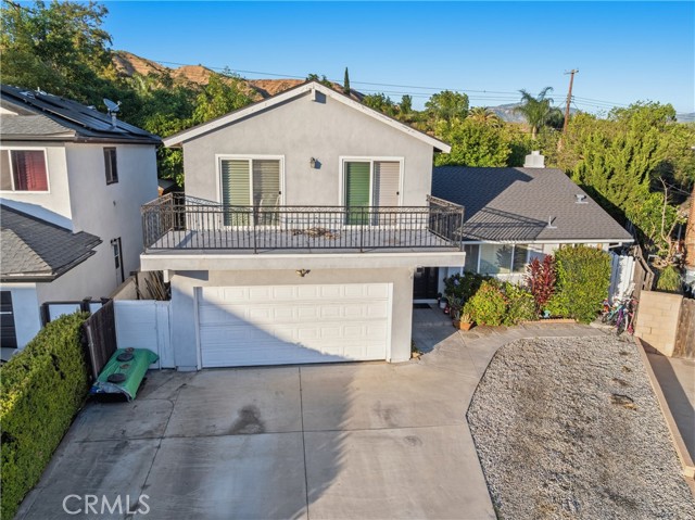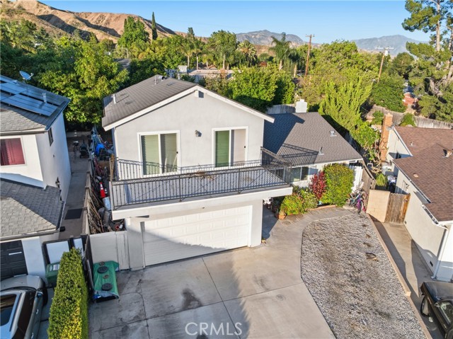 Welcome to this beautifully upgraded and remodeled 4-bedroom, 2-bath home near Lake View Terrace. Featuring plantation shutters and recessed lighting throughout, along with central heating and air, this home offers both comfort and style. The modern kitchen showcases marbled quartz countertops, a full backsplash, soft-close cabinetry, stainless steel appliances, a breakfast bar, and additional counter space ideal for a dry bar setup. The inviting living room features a cozy gas fireplace and opens to an oversized, private backyard—perfect for entertaining—with multiple access points and a large covered patio complete with ceiling fan and lighting. A convenient downstairs bedroom is ideal for guests, in-laws, or roommates, with potential for ADU conversion. Upstairs offers three spacious bedrooms, including two with direct access to a charming balcony/terrace—perfect for enjoying sunset views. A versatile loft area provides additional space for a home office or lounge.
