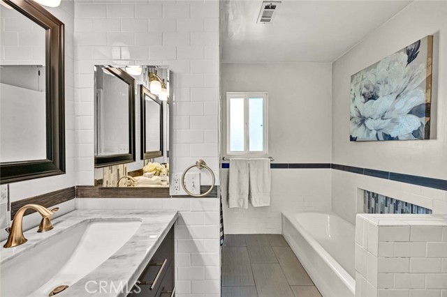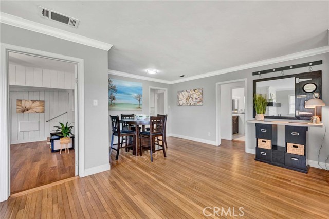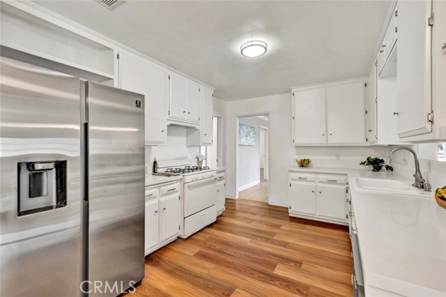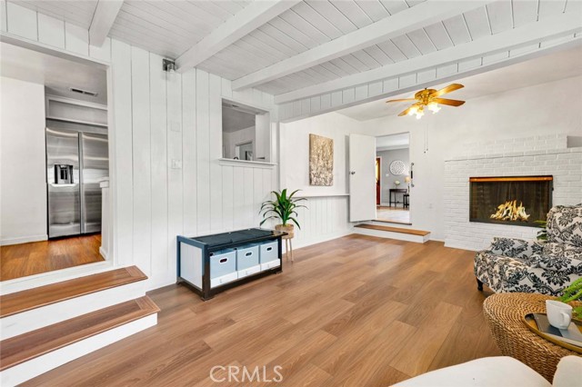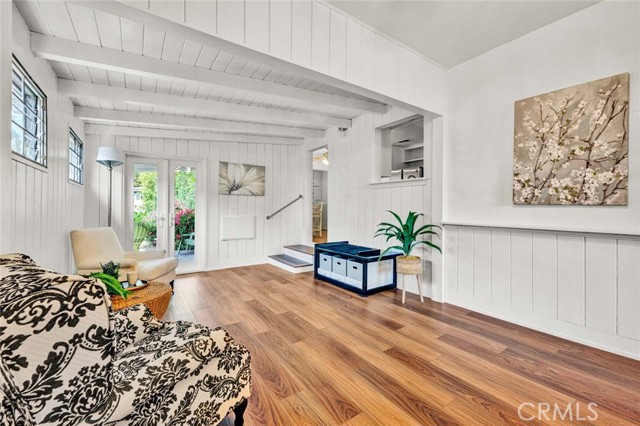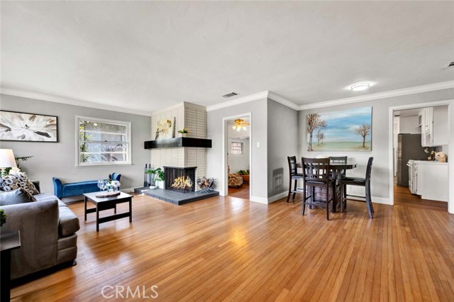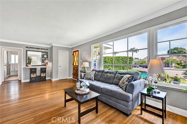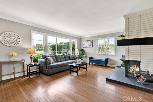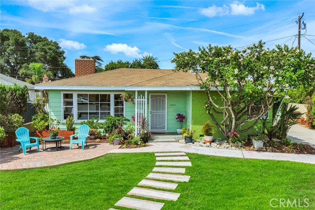 Welcome to a home that doesn’t just check boxes—it expands what’s possible.Tucked into a highly desirable Garden Grove neighborhood,this beautifully remodeled single-story residence offers the rare combination of refined living,flexible space & future expansion—perfect for professionals, growing households,or multi-generational living.From the moment you arrive,the charm is undeniable.A welcoming front sitting patio,lush w/ roses, succulents & a striking hibiscus tree,sets the tone for what’s inside.Follow the stone-paver walkway to a vintage front door that opens into a light-filled interior where classic character meets thoughtful upgrades.Inside,rich hardwood floors,crown molding & tall baseboards create a warm,elevated feel,while a wall of windows floods the living space w/ natural light.At the center of it all,an impressive two-sided stone fireplace anchors both the living & family rooms—perfect for cozy evenings or hosting w/ style. The fully remodeled kitchen is designed for both beauty & function,featuring sleek quartz countertops,crisp white cabinetry,stainless steel appliances & a charming breakfast nook.A convenient pass-through window keeps the connection flowing into the family room,where open beam ceilings, wainscoting & brand-new dual-pane French doors invite seamless indoor-outdoor living.The backyard isn’t just large—it’s an opportunity. Set on a pie-shaped lot,this expansive outdoor space offers exceptional potential to build an ADU—ideal for extended family,rental income,or a private workspace.The oversized covered patio creates the perfect setting for entertaining,relaxing, or enjoying quiet evenings w/ added privacy.The spacious primary suite offers a peaceful retreat w/ abundant natural light & generous closet space,while secondary bedrooms provide flexibility for guests, or a home office.The fully remodeled hallway bathroom features dual sinks,designer finishes,soaking tub & separate walk-in shower w/ dual showerheads—bringing a spa-like experience into your daily routine.Additional highlights include a large interior laundry room w/ utility storage,a beautifully preserved vintage-style secondary bath w/thoughtful built-ins.Don't forget the extra-long driveway & oversized detached garage w/ a built-in workshop & extensive storage offer unmatched versatility for hobbies,projects,or additional parking. Located just minutes from top-rated schools,shopping,dining & major freeways,this is a genuine opportunity.A Real Gem!