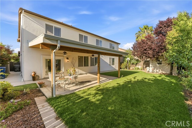 Experience refined living in this exceptional Clovis residence, where timeless elegance meets modern comfort. This beautifully designed home offers an elevated lifestyle within the highly acclaimed Clovis Unified School District. From the moment you enter, you're welcomed by a grand, light-filled interior featuring soaring ceilings, expansive living spaces, and a seamless, sophisticated flow ideal for both everyday living and upscale entertaining. The heart of the home is a well-appointed gourmet kitchen, complete with granite countertops, abundant cabinetry, and an open-concept design that effortlessly connects to the main living areas. Thoughtfully designed for versatility, the main level features a private bedroom and full bathperfect for guests or multi-generational livingwhile the upper level showcases a spacious loft retreat and generously sized secondary bedrooms. The luxurious primary suite offers a true escape, highlighted by a spa-inspired bathroom with a soaking tub, separate shower, dual vanities, and an expansive walk-in closet. Step outside to a private backyard oasis, where a covered patio creates the perfect setting for outdoor entertaining or tranquil evenings.